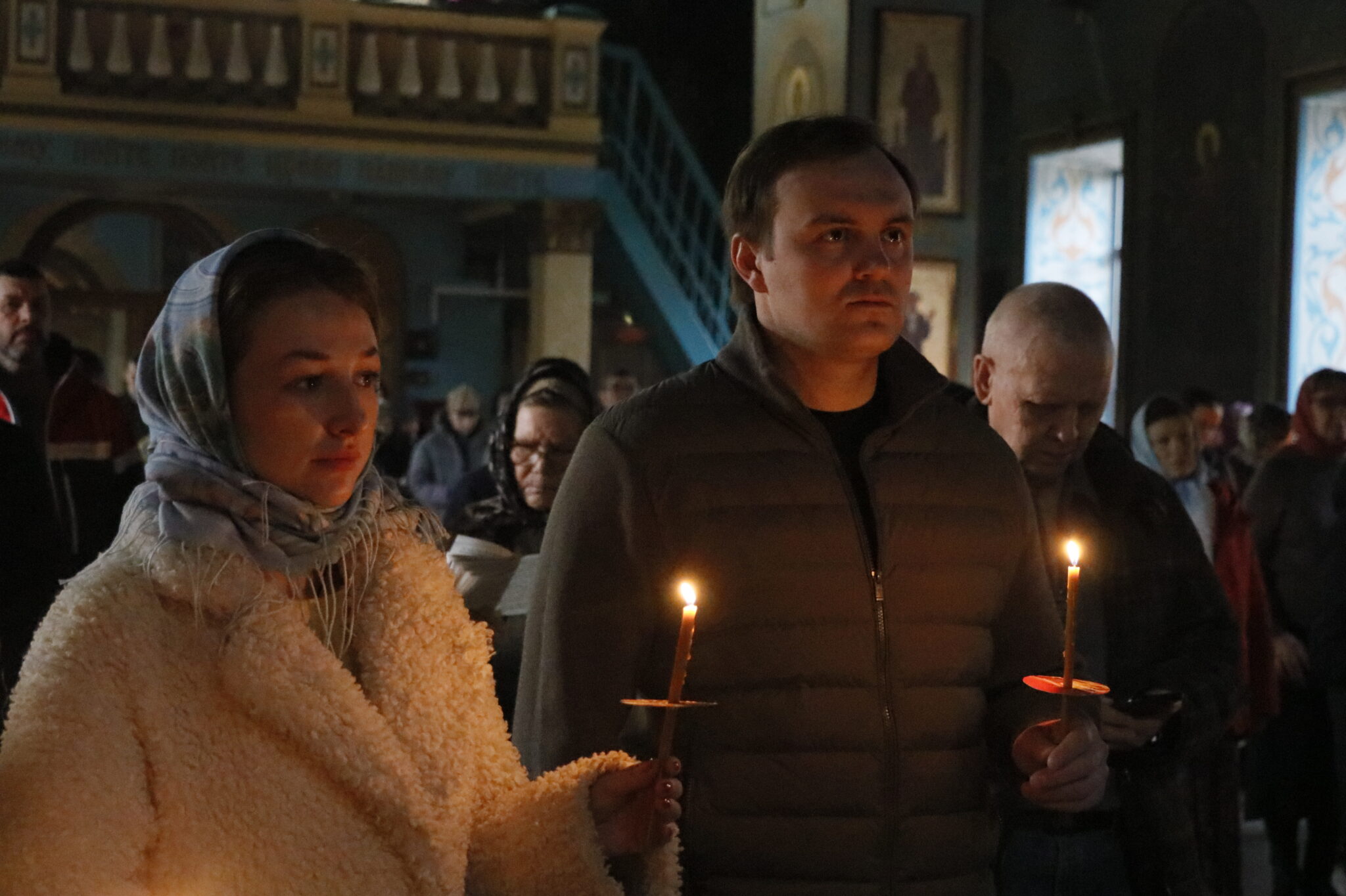 В завершение богослужения правящий архиерей приветствовал молящихся со святым вечером: