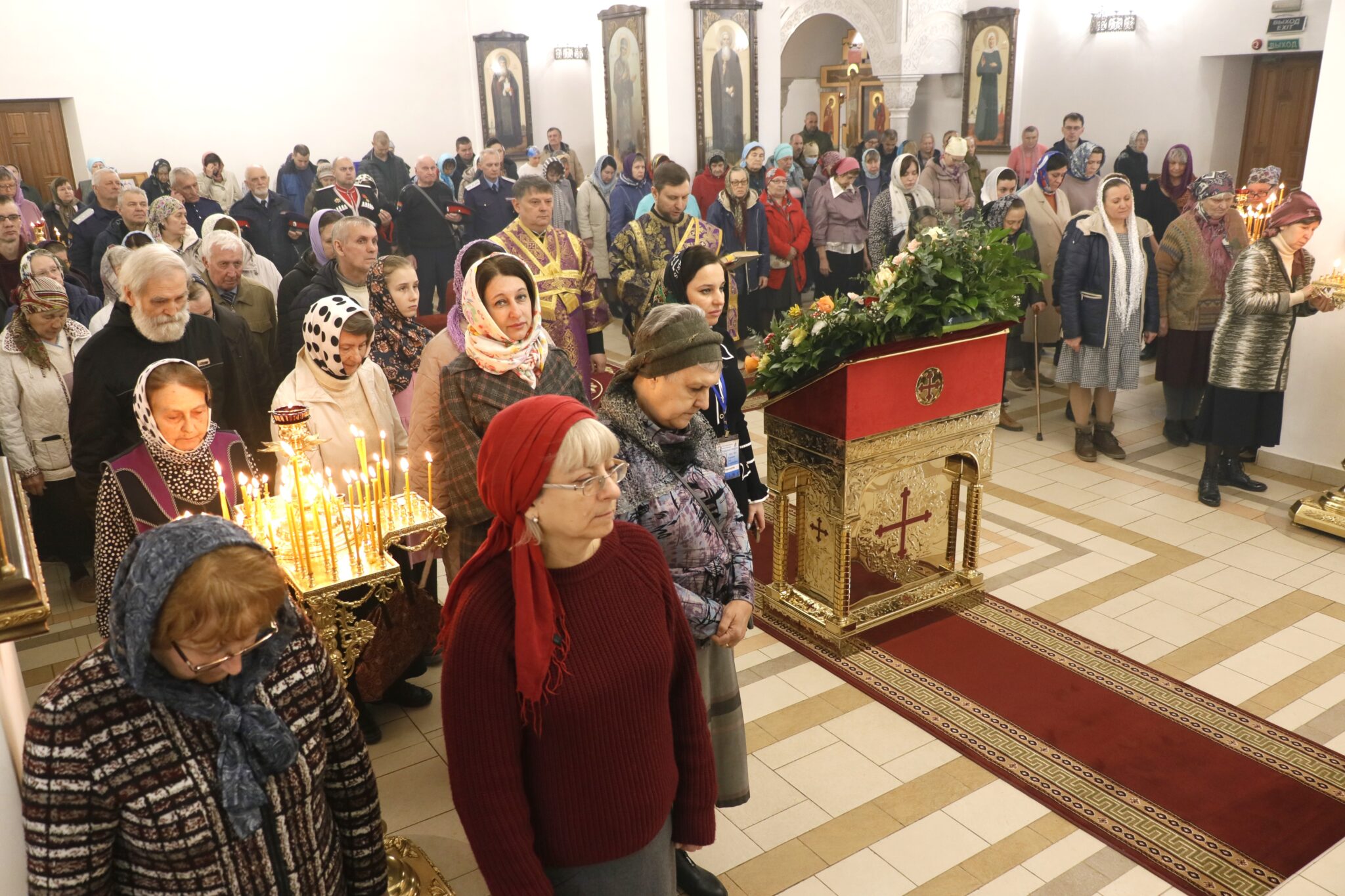 Молитвенные песнопения исполнил хор храма под управлением регента Ильи Иванова.