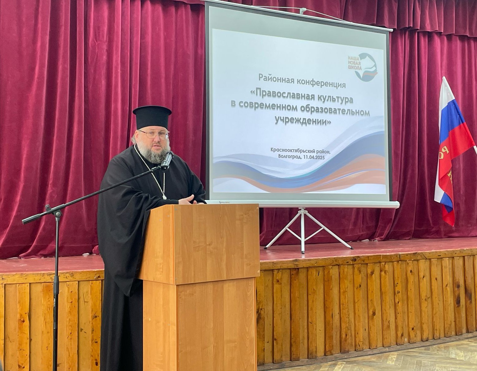 11 апреля в Краснооктябрьском районе Волгограда состоялась конференция «Православная культура в современном образовательном учреждении». Встреча прошла по инициативе Сталинградского благочиния в рамках соглашения между ГАУ ДПО «Волгоградская государственная академия последипломного образования» и Волгоградской митрополии. Проведение конференции поддержали епархиальный Отдел религиозного образования и катехизации и администрация Краснооктябрьского района. Участниками встречи стали руководители школ района, завучи и советники по воспитательной работе.