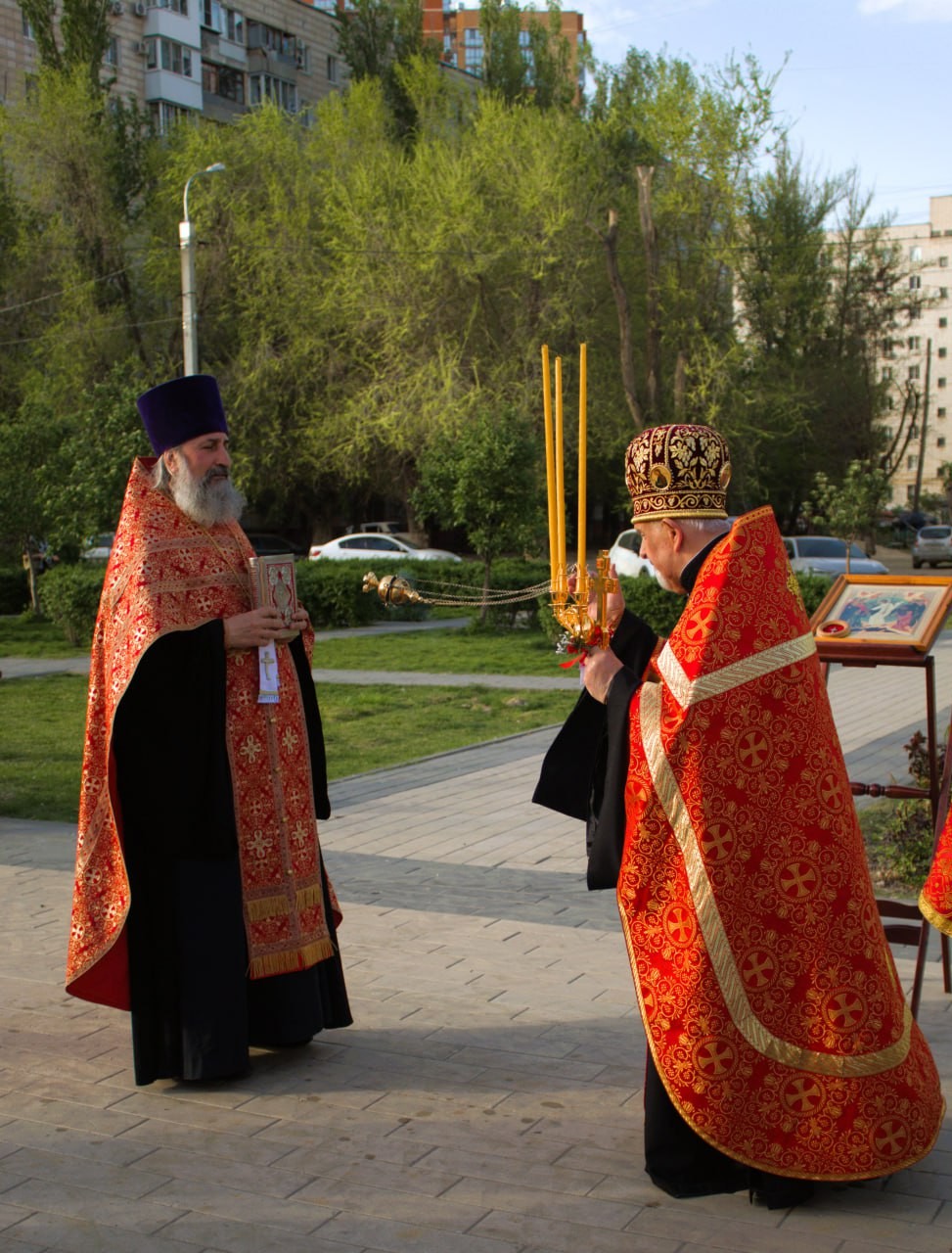 После богослужения священники поздравили волгоградцев, которые молились вместе с батюшками, а также тех, кто прогуливался неподалёку с Пасхой Христовой и раздали буклеты о празднике, подготовленные Миссионерским отделом Волгоградской епархии, журналы, книги, небольшие иконы и пасхальные яйца.