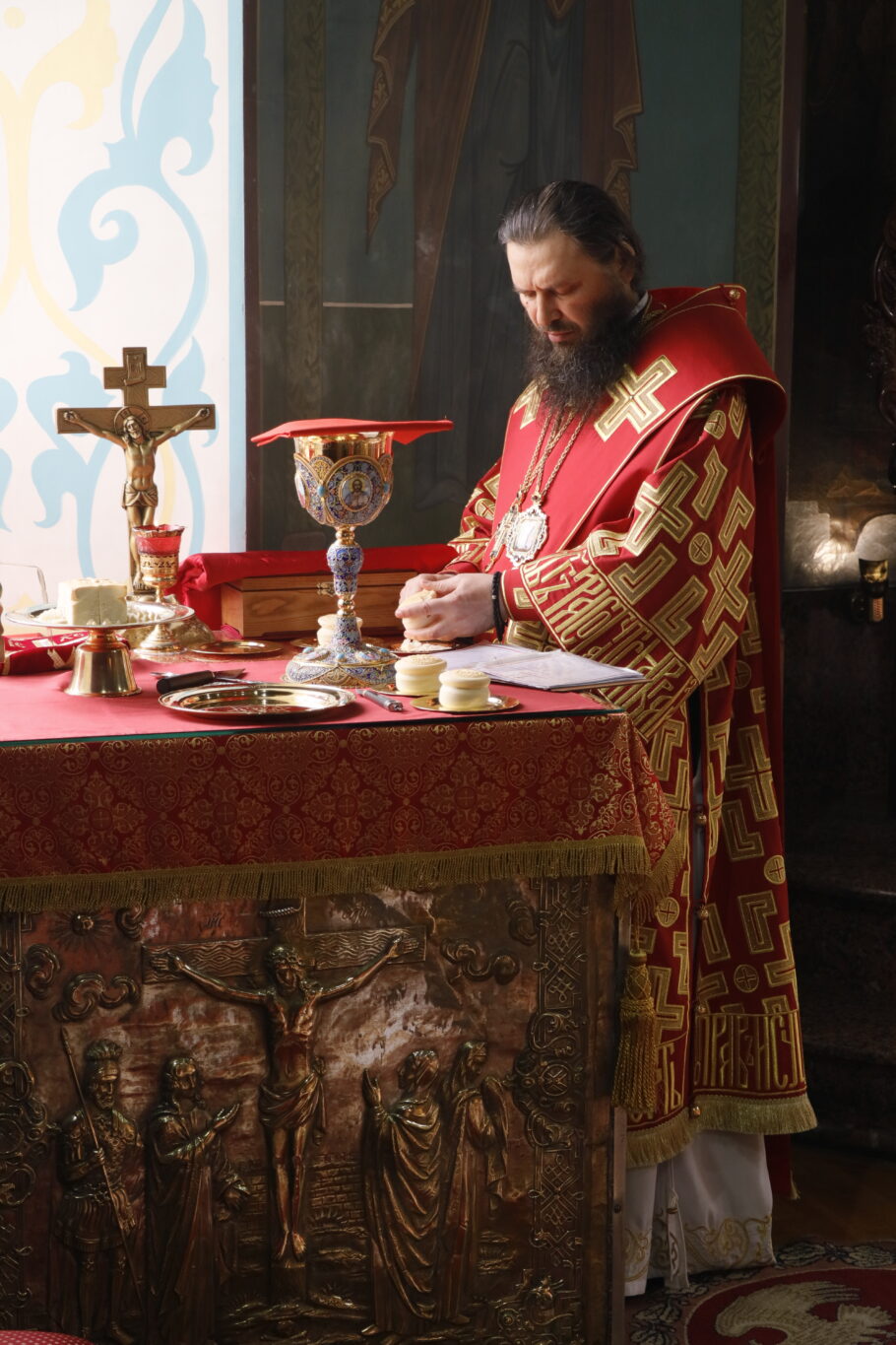 Перед Причастием прихожан иерей Владимир Пономаренко огласил Пасхальное послание митрополита Феодора.