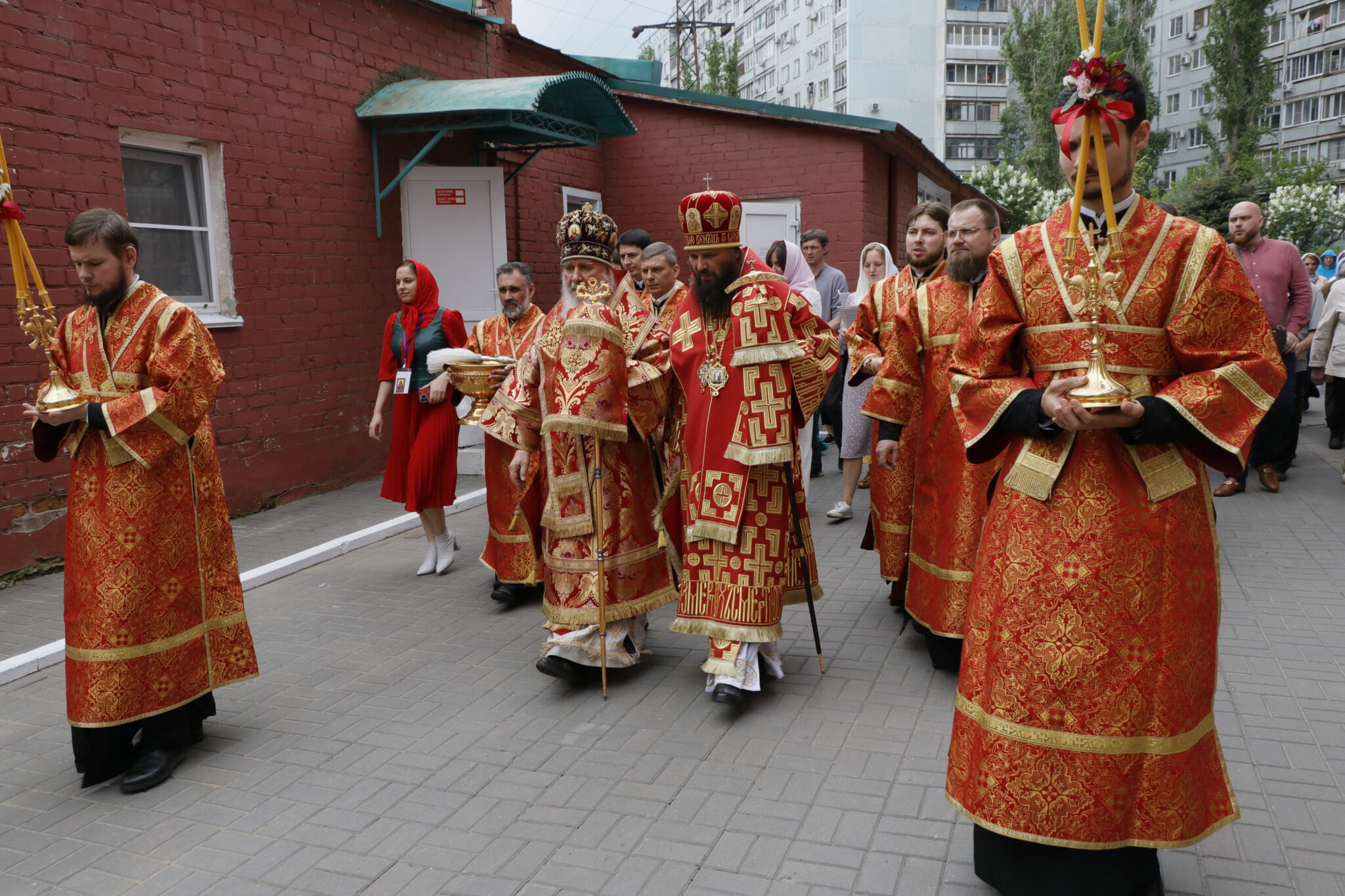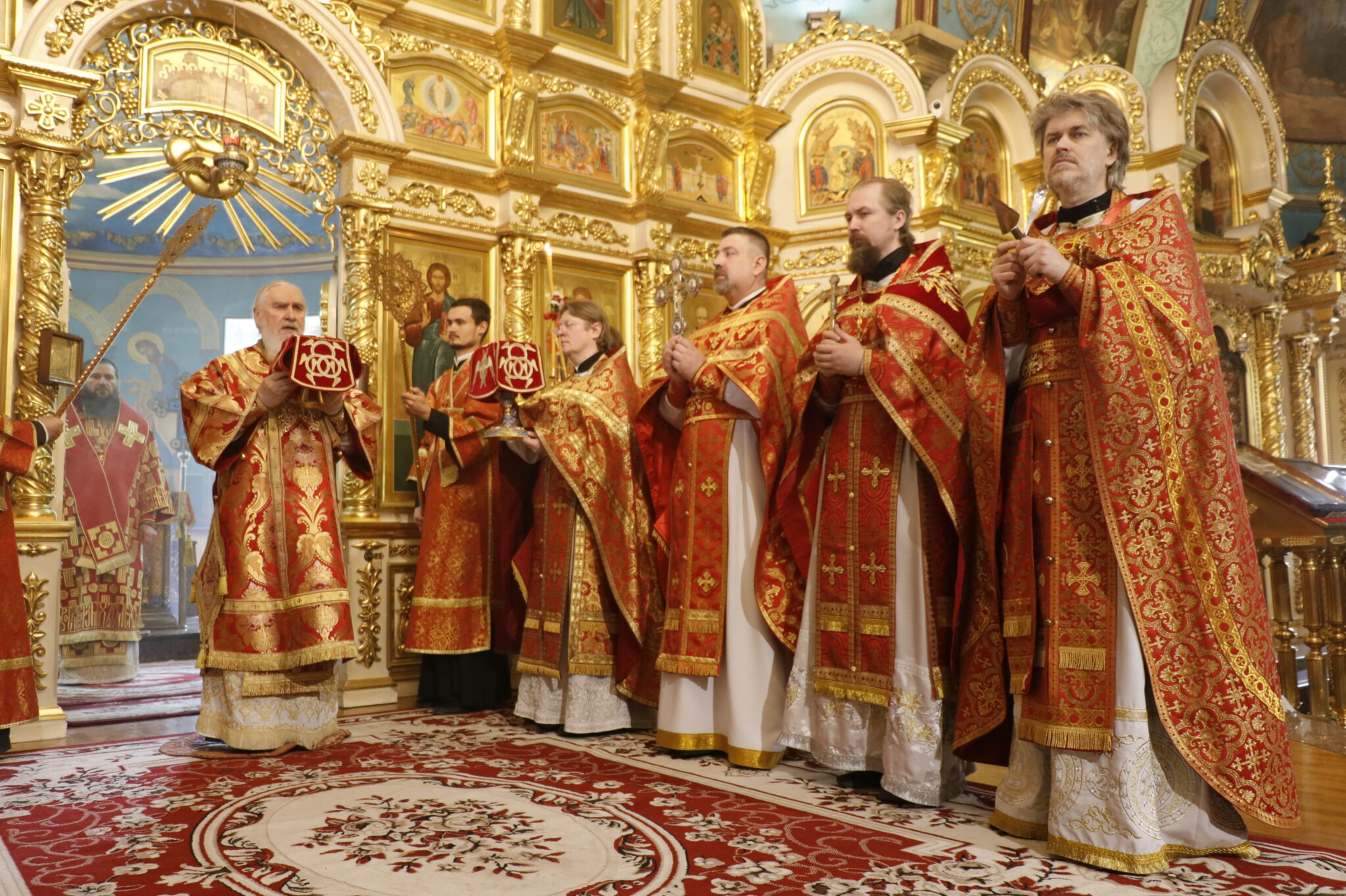 Божественную литургию возглавили председатель Издательского Совета Русской Православной Церкви митрополит Калужский и Боровский Климент и митрополит Волгоградский и Камышинский Феодор. Архипастырям сослужили: благочинный Бекетовского округа протоиерей Алексий Зимовец, благочинный Зацарицынского округа, настоятель храма иерей Вячеслав Патрин, благочинный Северного округа протоиерей Николай Лисный, благочинный Сталинградского округа иерей Олег Иващенко, иерей Роман Блинков, иерей Павел Бецков, иерей Владимир Аврамов, иерей Владимир Пономаренко.