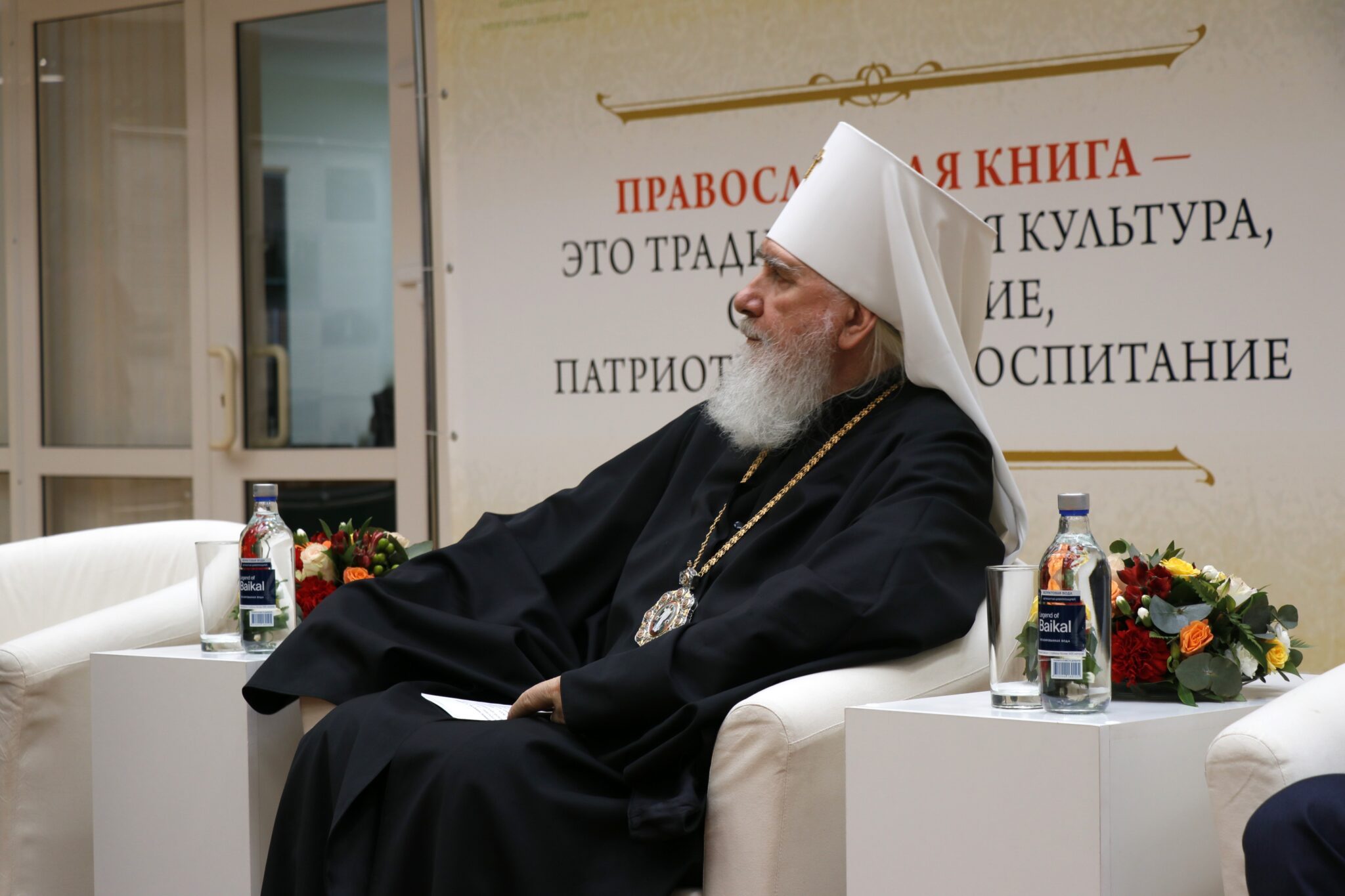 Митрополит Калужский и Боровский Климент рассказал о роли Церкви во время Великой Отечественной войны, о служении, которое сегодня наши священники несут в зоне СВО, и представил некоторые книги о подвиге духовенства во время Великой Отечественной войны (книга Владислава Бахревского «Непобеждённые») и современных героев (книга Николая Головкина «Десантный батюшка. Герой Российской Федерации Михаил Васильев»).