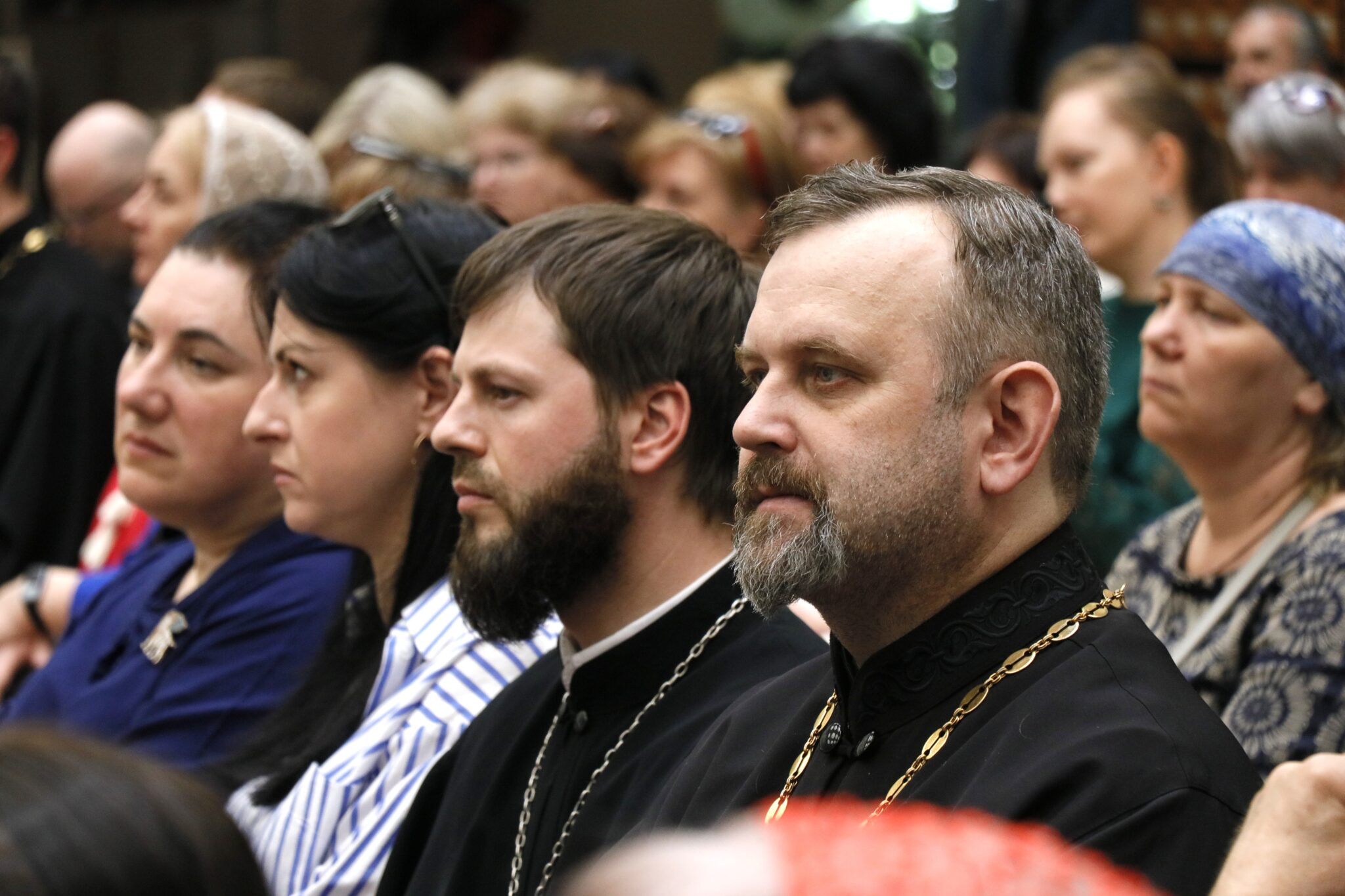 За богослужением молились: митрополит Калужский и Боровский Климент, митрополит Волгоградский и Камышинский Феодор, епископ Урюпинский и Новоаннинский Елисей, епископ Калачевский и Палласовский Иоанн, гости нашего города, прибывшие принять участие в работе форума, а также волгоградцы, которые пришли на выставку.