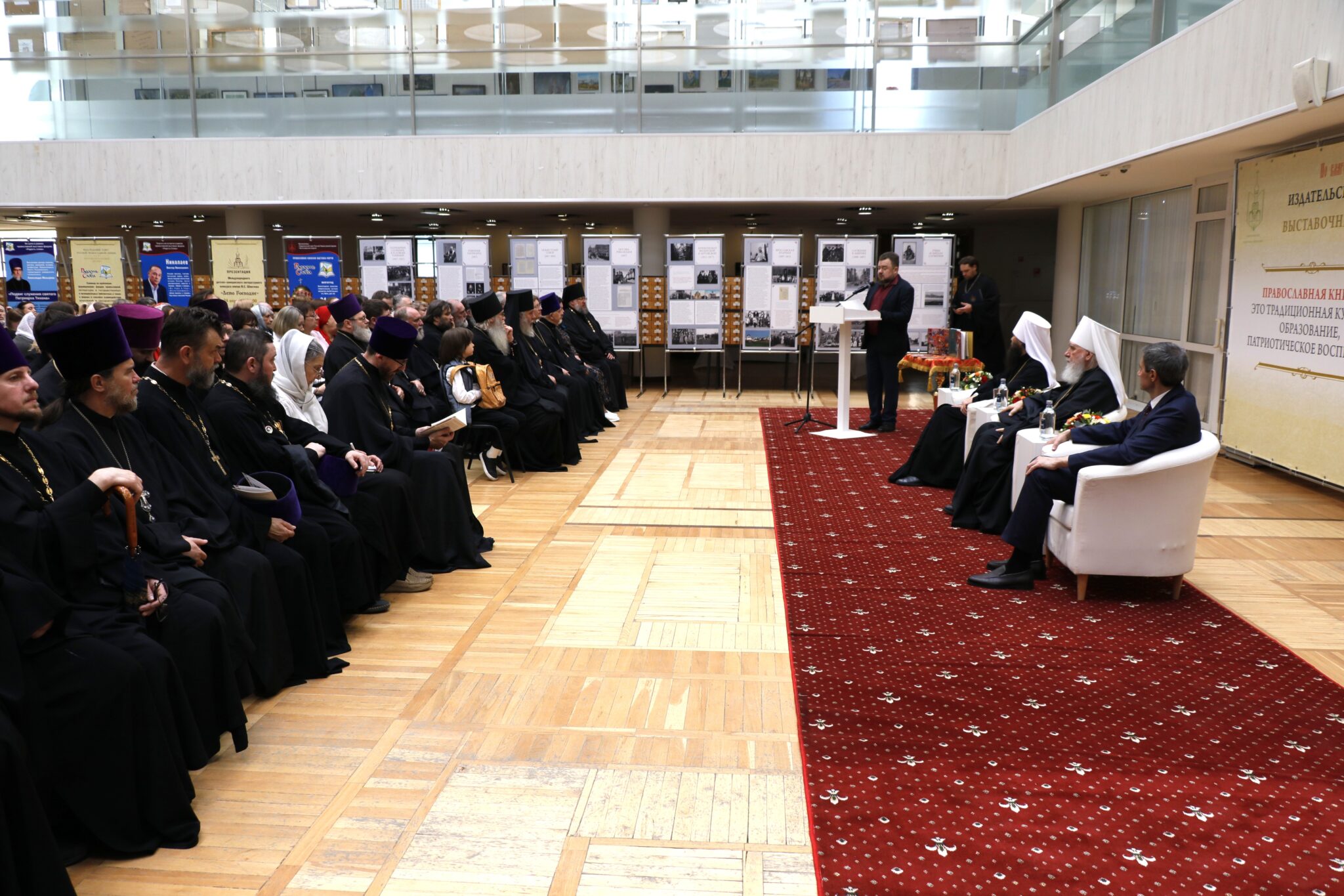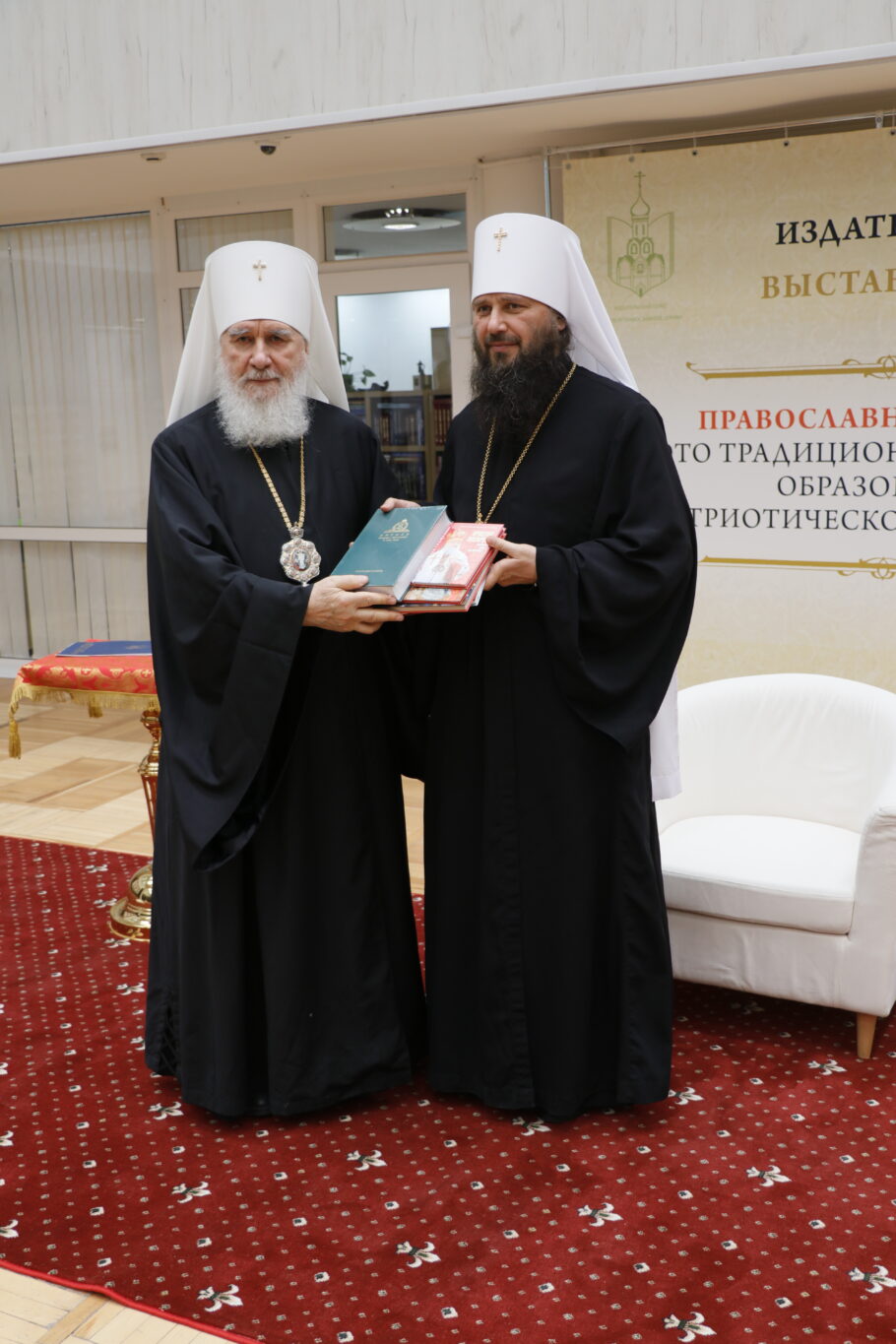 По окончании выступлений архиереи осмотрели фотовыставку «Святитель Тихон» и выставку православной литературы.