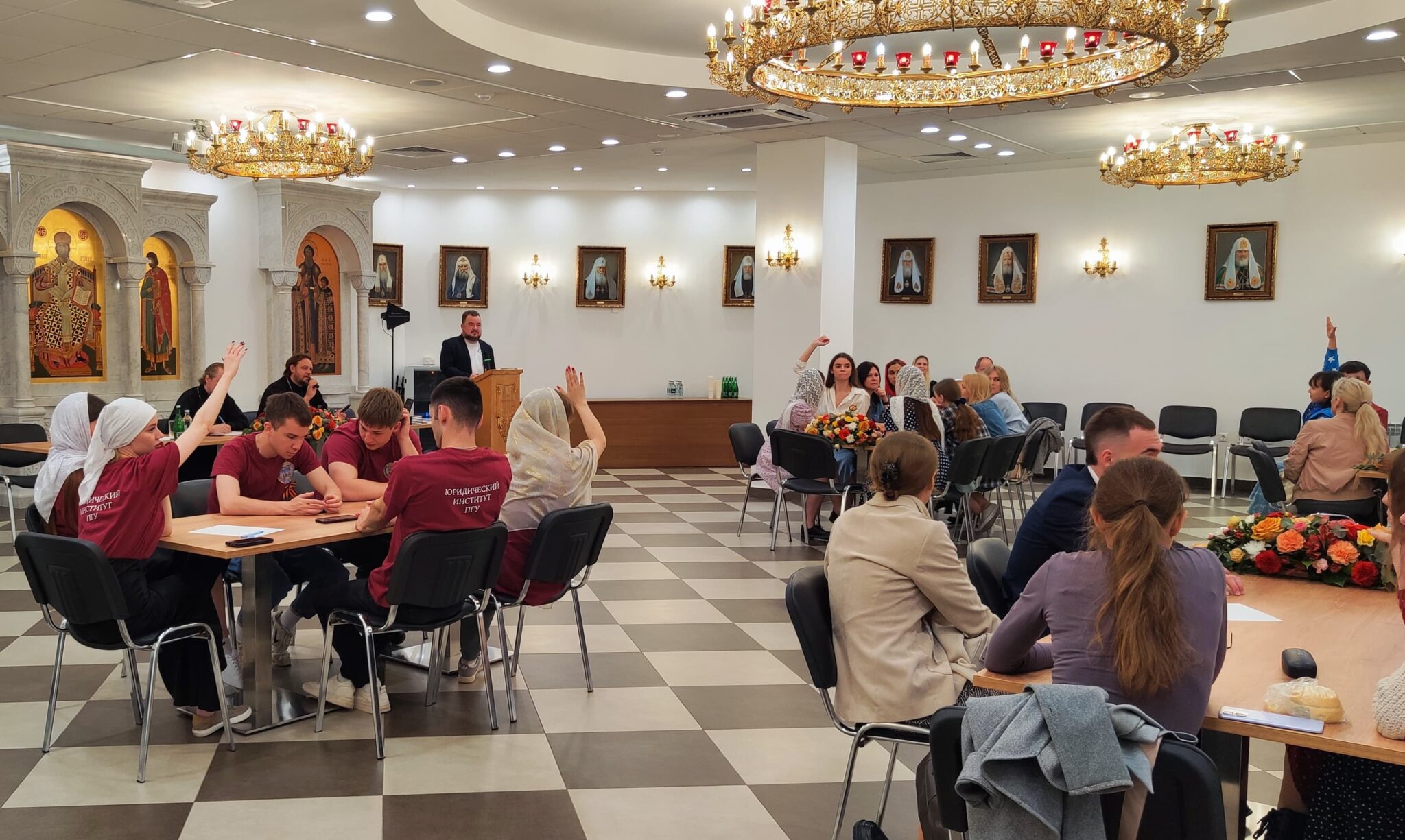 В конференц-зале кафедрального собора святого благоверного князя Александра Невского состоялась молодежная интеллектуальная игра брейн-ринг на тему «День славянской письменности» и практический семинар по церковнославянскому языку для участников брейн-ринга.