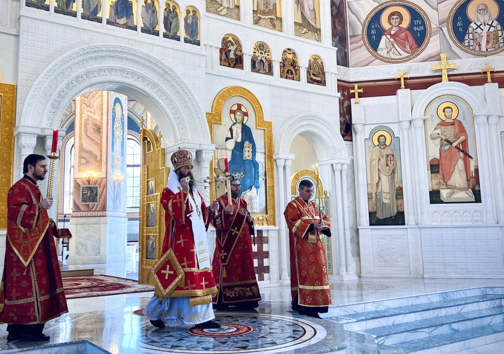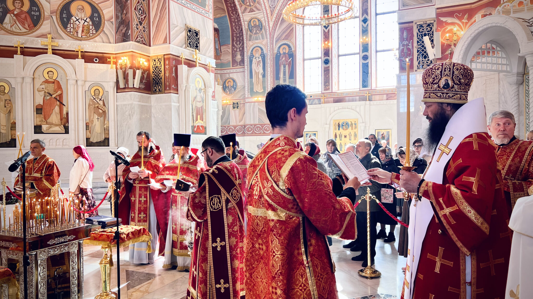 Его Преосвященству сослужили клирики собора.