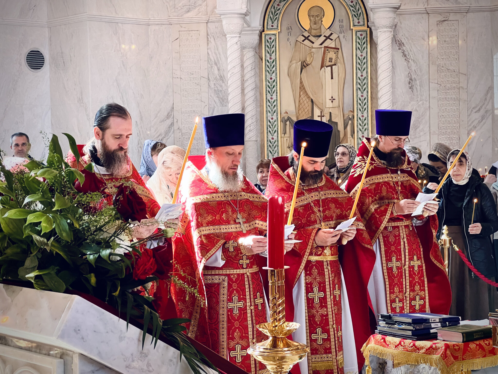 По завершении Литургии была совершена панихида с пасхальными песнопениями.