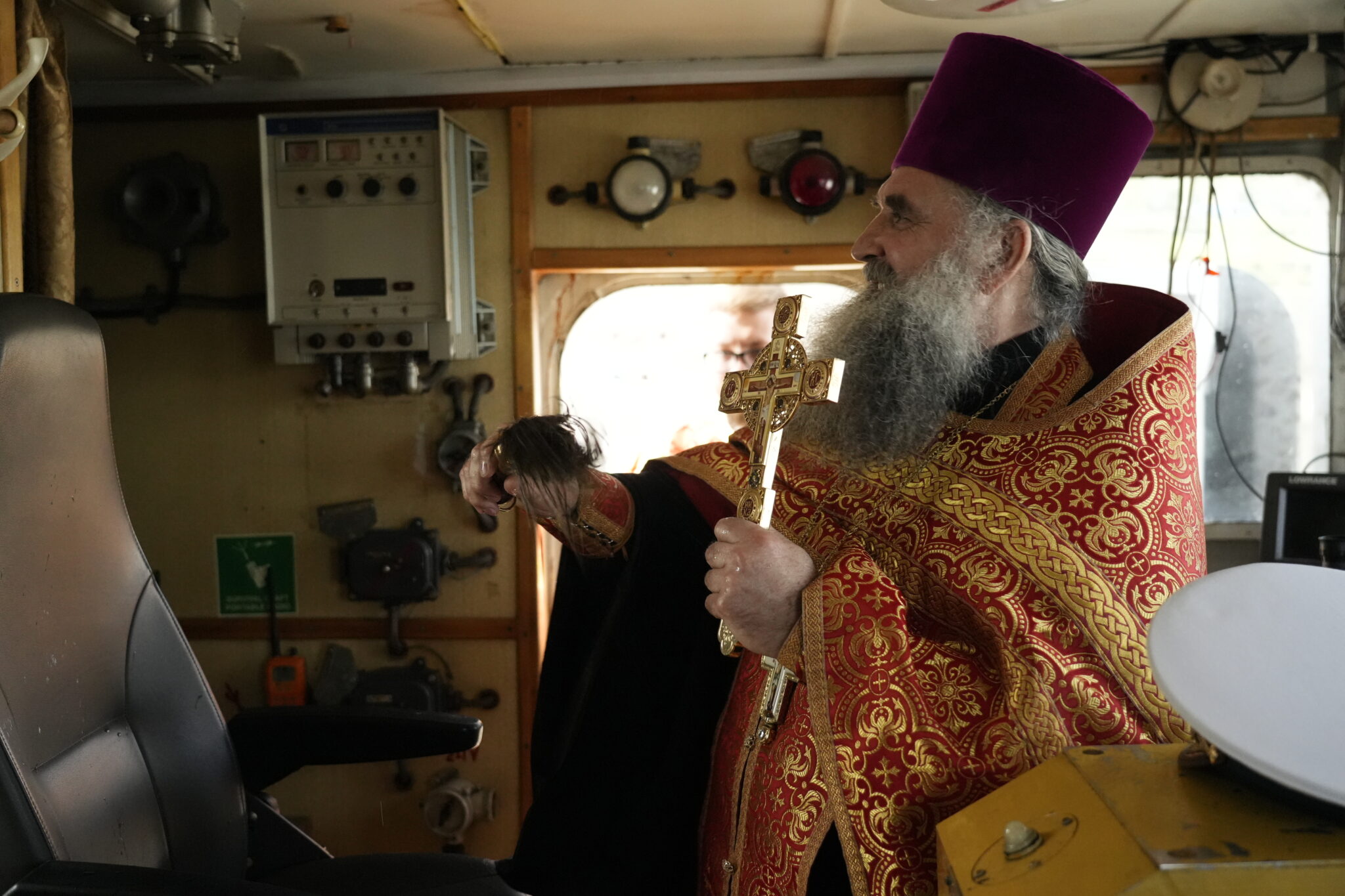 Благочинный Александровского округа протоиерей Игорь Малов в сослужении иерея Алексия Сапожникова и иерея Александра Тимонина совершил молебен, а затем совершил освящение судна. Команде передали в дар икону святителя Николая Чудотворца.