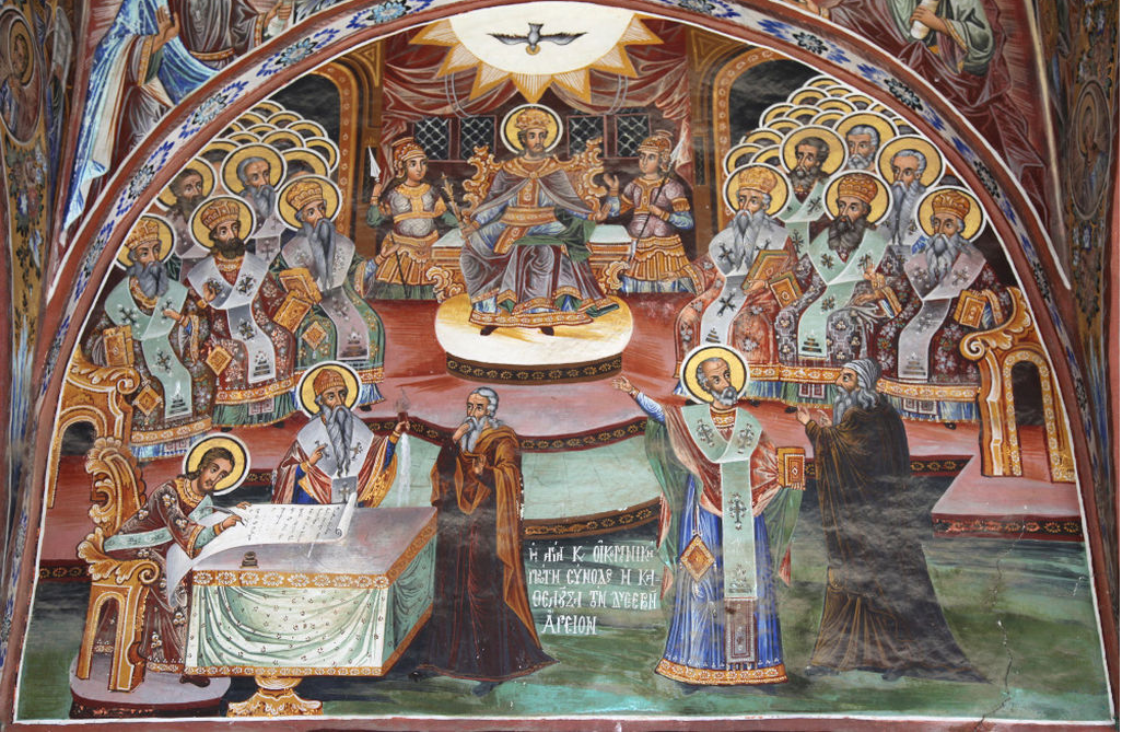 Созывом Первого Вселенского собора мы обязаны императору Константину Великому. Этот собор, в первую очередь, был задуман для того, чтобы опровергнуть ересь александрийского священника Ария: Арий усомнился в Божественной природе Христа и учил, что Иисус был лишь высшим творением Бога, а не Богом-Сыном и Творцом.