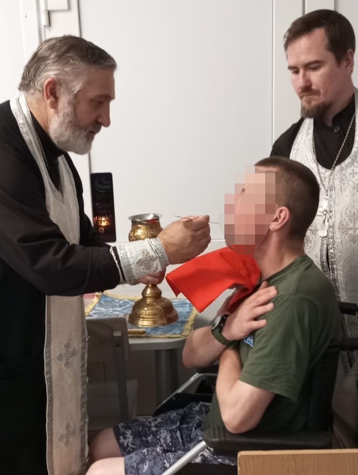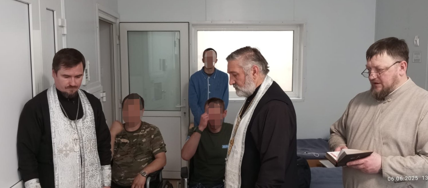Духовенство совершило обедницу, бойцы причастились Святых Христовых Таин. Тем, кому было необходимо, раздали нательные крестики, подарили небольшие иконы. Воины сердечно благодарили за молитвенную поддержку, за посещение и беседы – всё это позволяет им не терять присутствие духа, придаёт сил, укрепляет веру и помогает скорее восстановить здоровье и вернуться к своим семьям и мирной жизни.