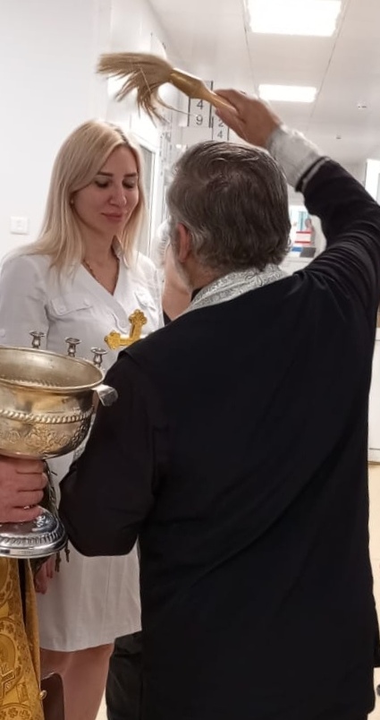 В завершение посещения батюшки окропили сотрудников святой водой, освятили рабочие места и транспорт.