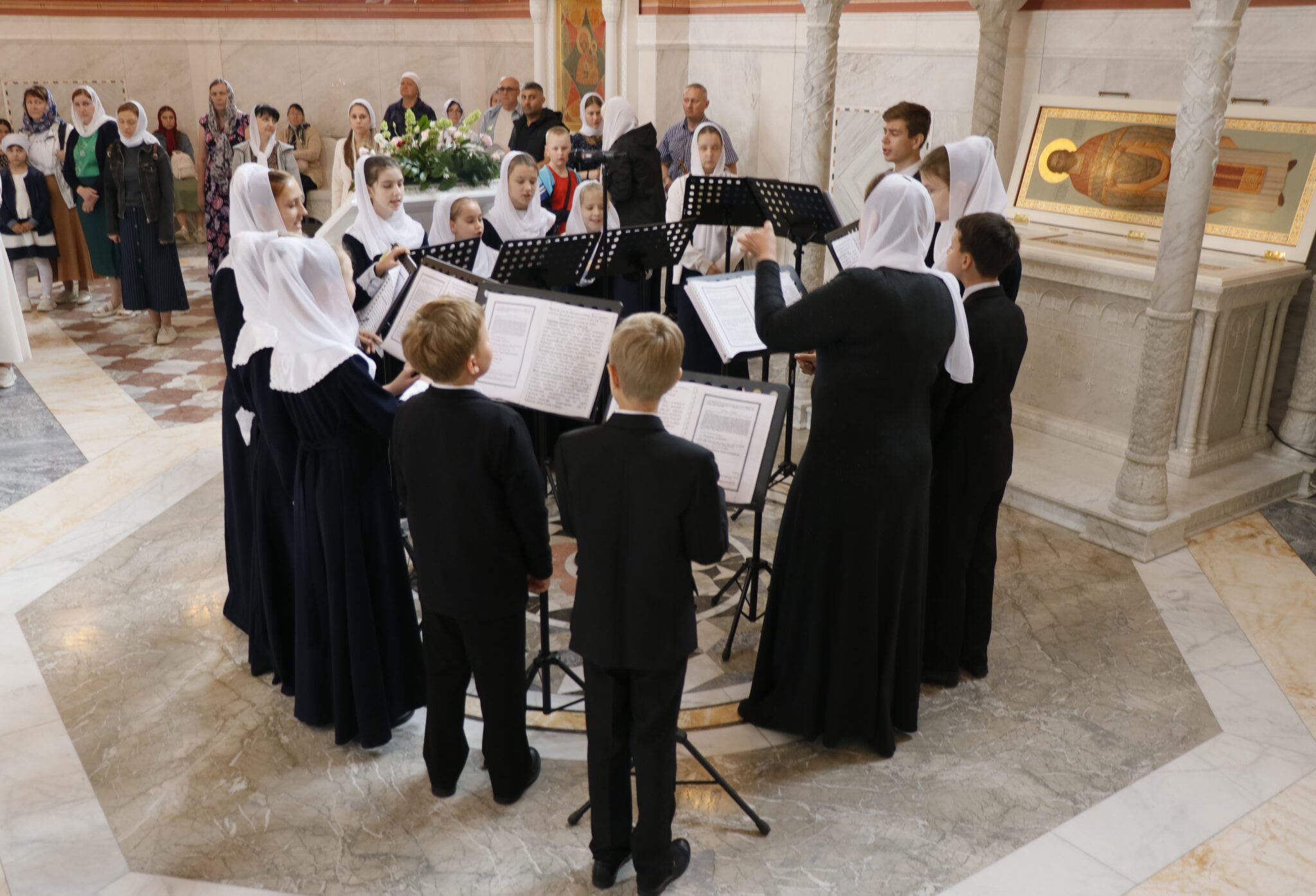 Богослужебные песнопения исполнили архиерейский хор под управлением регента Марии Зимовец и архиерейский детский хор «Ярославичи» под управлением педагога Светланы Терниковой.