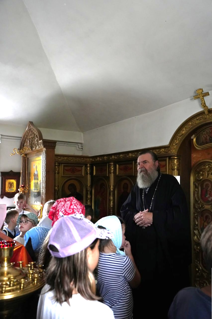 Участники смены посетили святой источник Иоанна Богослова в Волгограде, Почаевской иконы Божией Матери во Фроловском районе, побывали в храме святых апостолов Петра и Павла в селе Лог. Настоятель отец Александр рассказал историю кровоточивой Казанской иконы Пресвятой Богородицы, которая находится в храме. Дети, воспитатели, вожатые и сопровождающие родители помолились у святого образа.