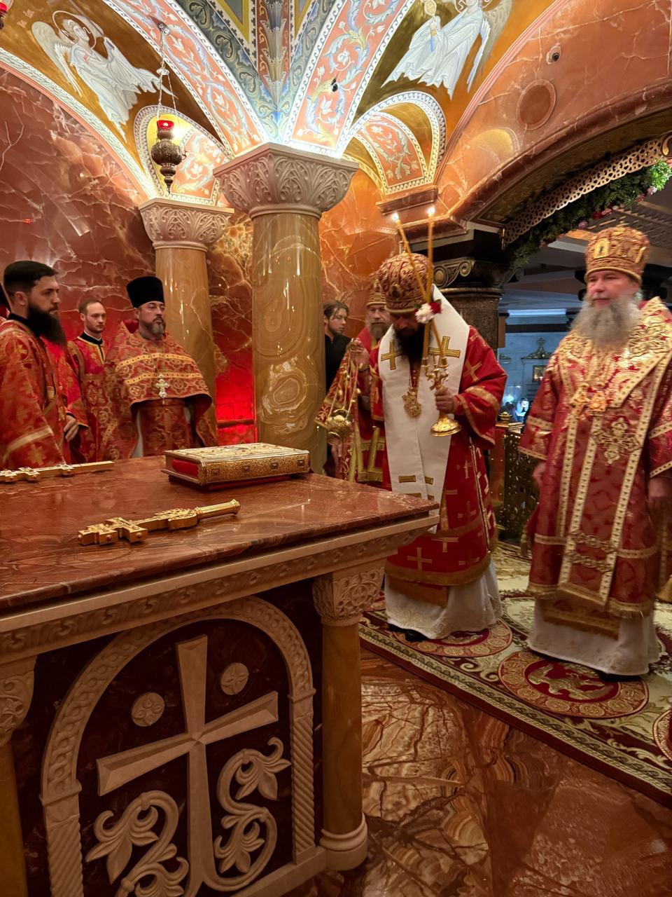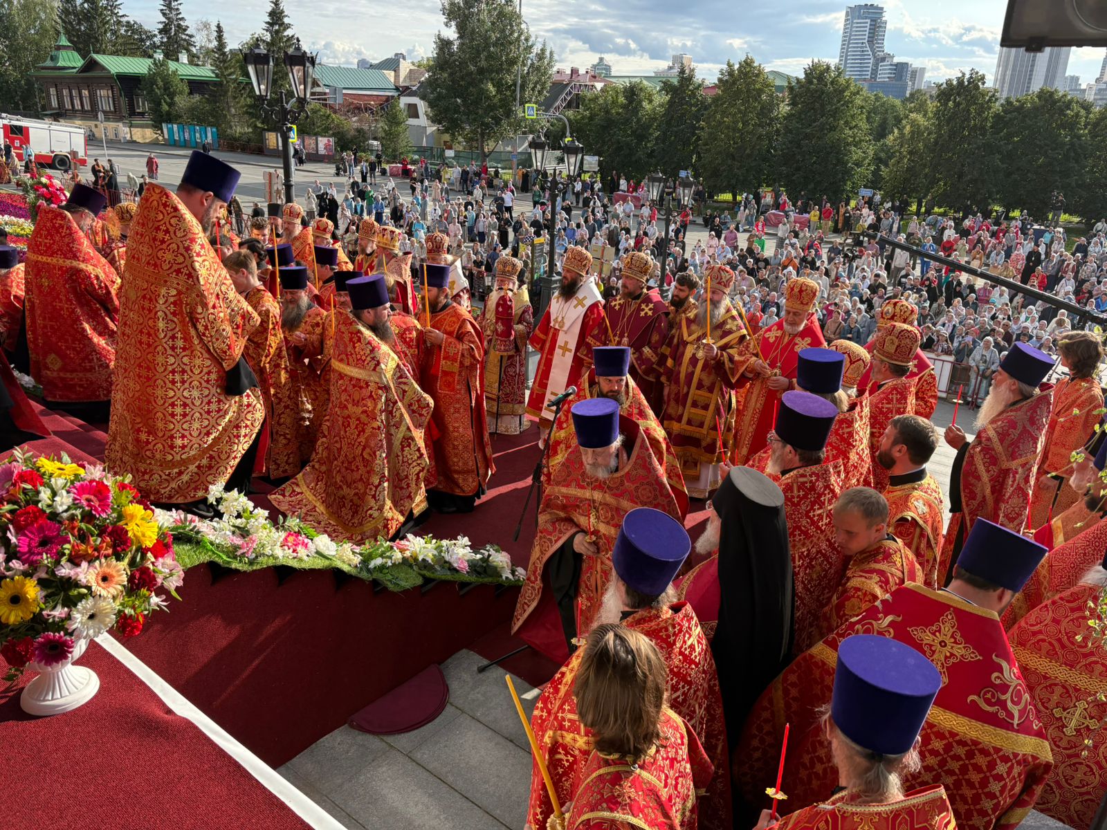 Богослужение возглавили 13 архиереев: постоянный член Священного Синода Русской Православной Церкви, глава Cреднеазиатского митрополичьего округа митрополит Ташкентский и Узбекистанский Викентий; Представитель Патриарха Антиохийского и всего Востока при Патриархе Московском и всея Руси митрополит Филиппопольский Нифон; митрополит Барнаульский и Алтайский Сергий; митрополит Волгоградский и Камышинский Феодор; Председатель Синодального отдела религиозного образования и катехизации, митрополит Екатеринбургский и Верхотурский Евгений; митрополит Челябинский и Миасский Алексий; митрополит Воронежский и Лискинский Леонтий; епископ Нижнетагильский и Невьянский Феодосий; епископ Серовский и Краснотуринский Феогност; епископ Каменский и Камышловский Мефодий; епископ Шадринский и Далматовский Владимир; епископ Троицкий и Южноуральский Павел; епископ Алапаевский и Ирбитский Сергий.