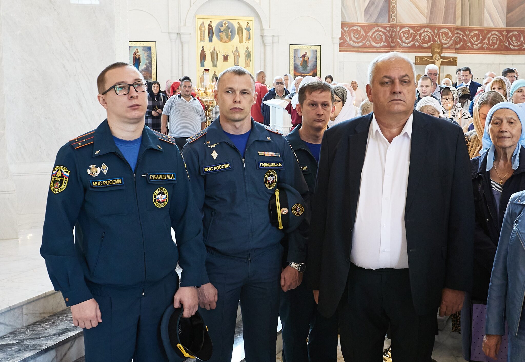 За богослужением молилась настоятельница Свято-Вознесенского женского монастыря игумения Анна (Ерофеева) с сестрами обители, представители власти, казаки, кадеты, сестры милосердия.