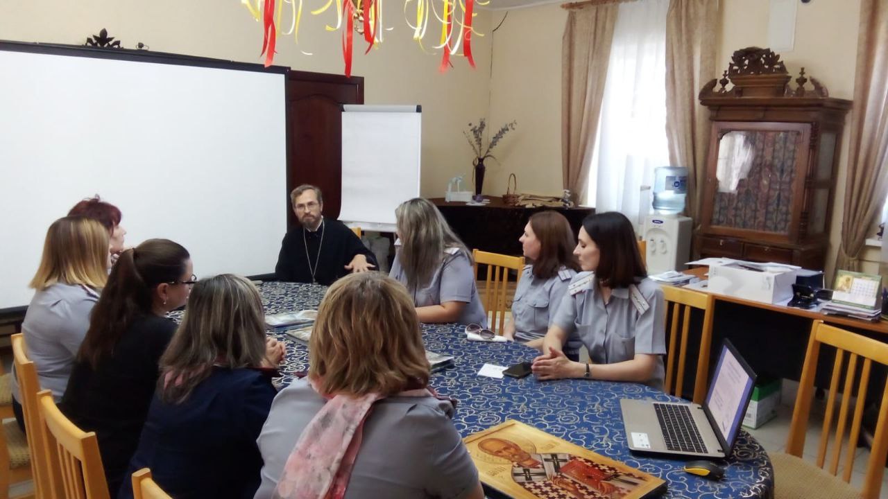 Иерей Георгий Родионов, клирик Никольского кафедрального собора, и специалист по социальному служению Марина Григорьева провели рабочую встречу с сотрудниками воспитательной, социальной и психологической службы управления Федеральной службы исполнения наказаний г. Камышина.