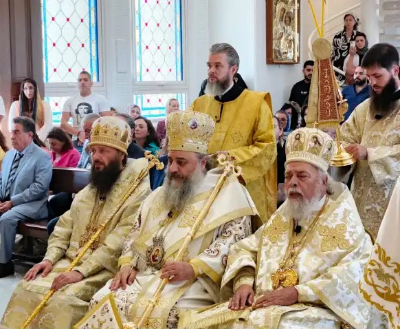 Приветствуем всех прибывших гостей в священном сане, которые сослужили вместе с Владыкой Феодором. Приветствуем отца Иосифа из Сайды, отца Филиппа, представителя Патриарха Московского и всея Руси при Патриархе Антиохии и всего Востока, а также членов общины Подворья Русской Православной Церкви, прибывших, чтобы разделить с нами радость совместной молитвы.