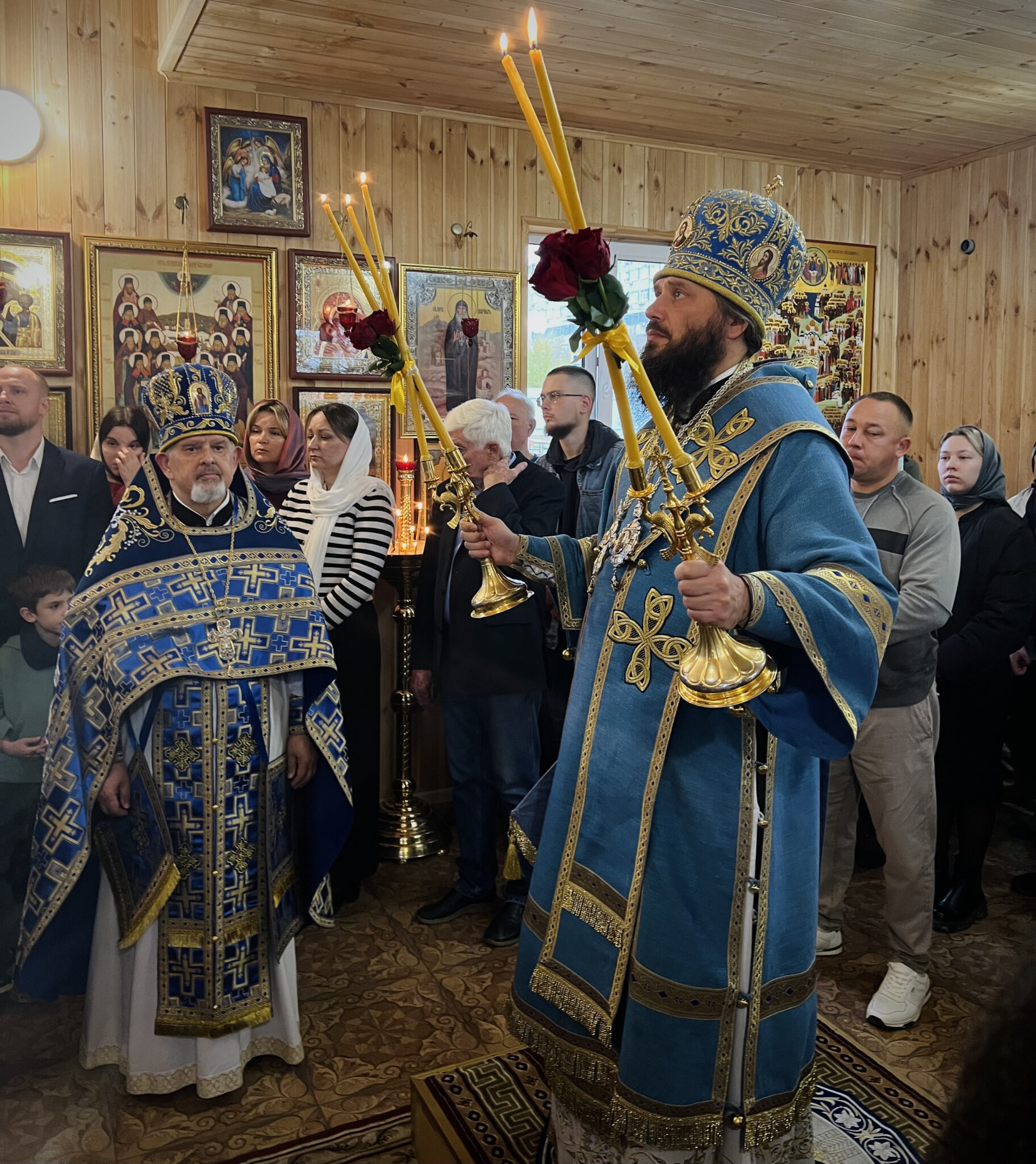 В завершение богослужения отец Георгий обратился к правящему архиерею со словами приветствия и благодарности за совершение Божественной литургии в день престольного торжества храма иконы Божией Матери «Спорительница хлебов».
