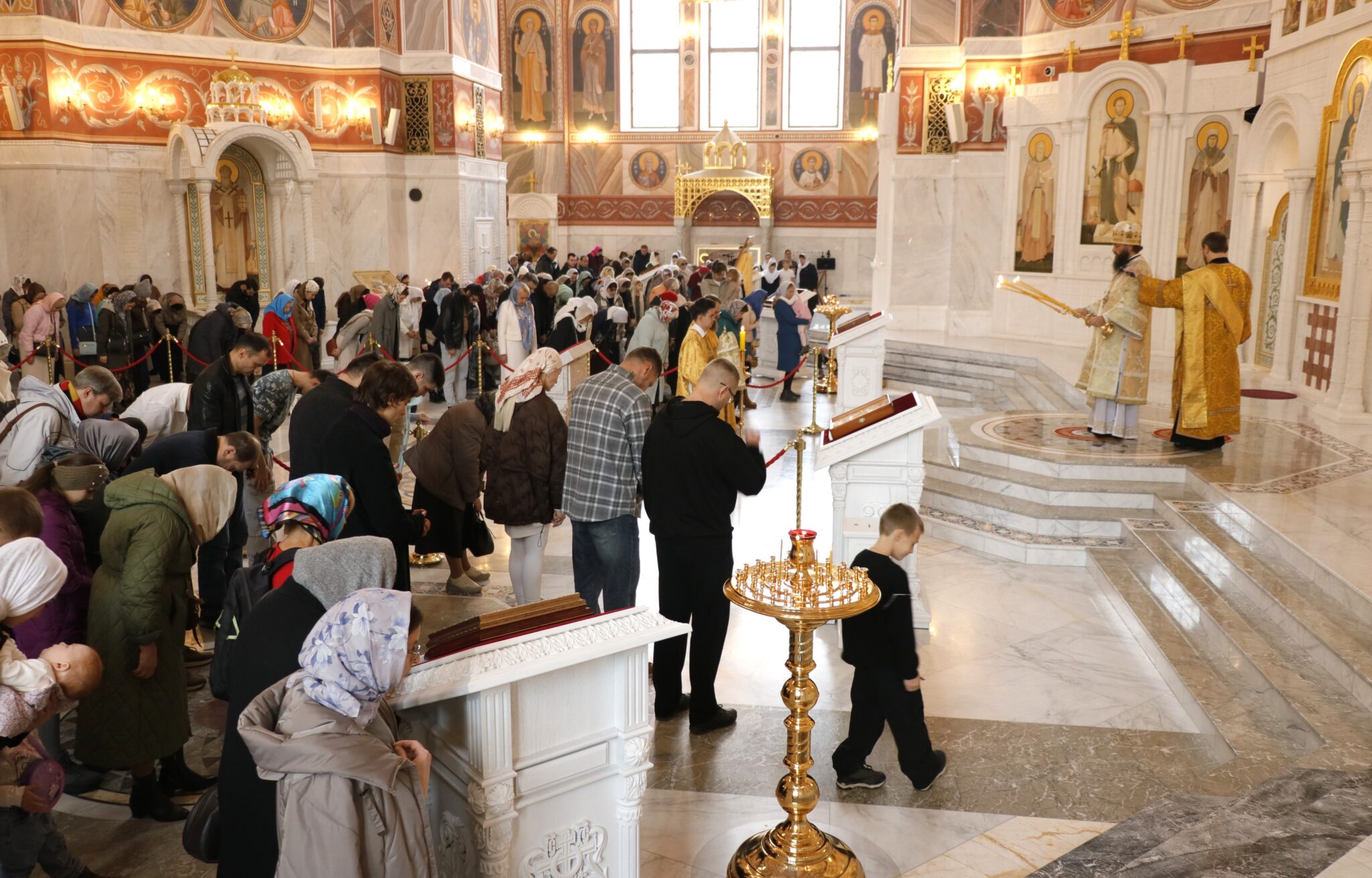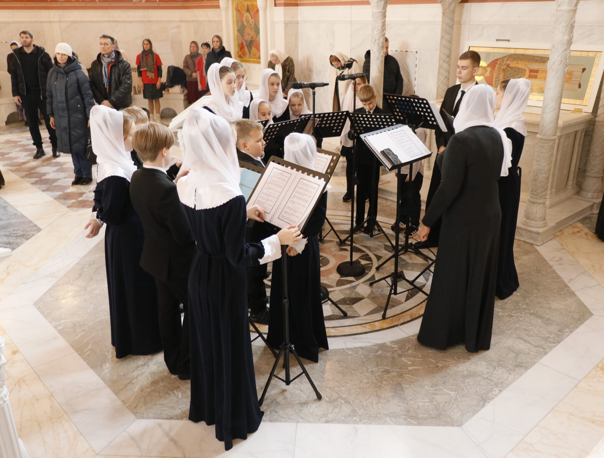 Богослужебные песнопения исполнила архиерейский хор под управлением регента Марии Зимовец и детский архиерейский хор «Ярославичи» под управлением педагога Светланы Терниковой.