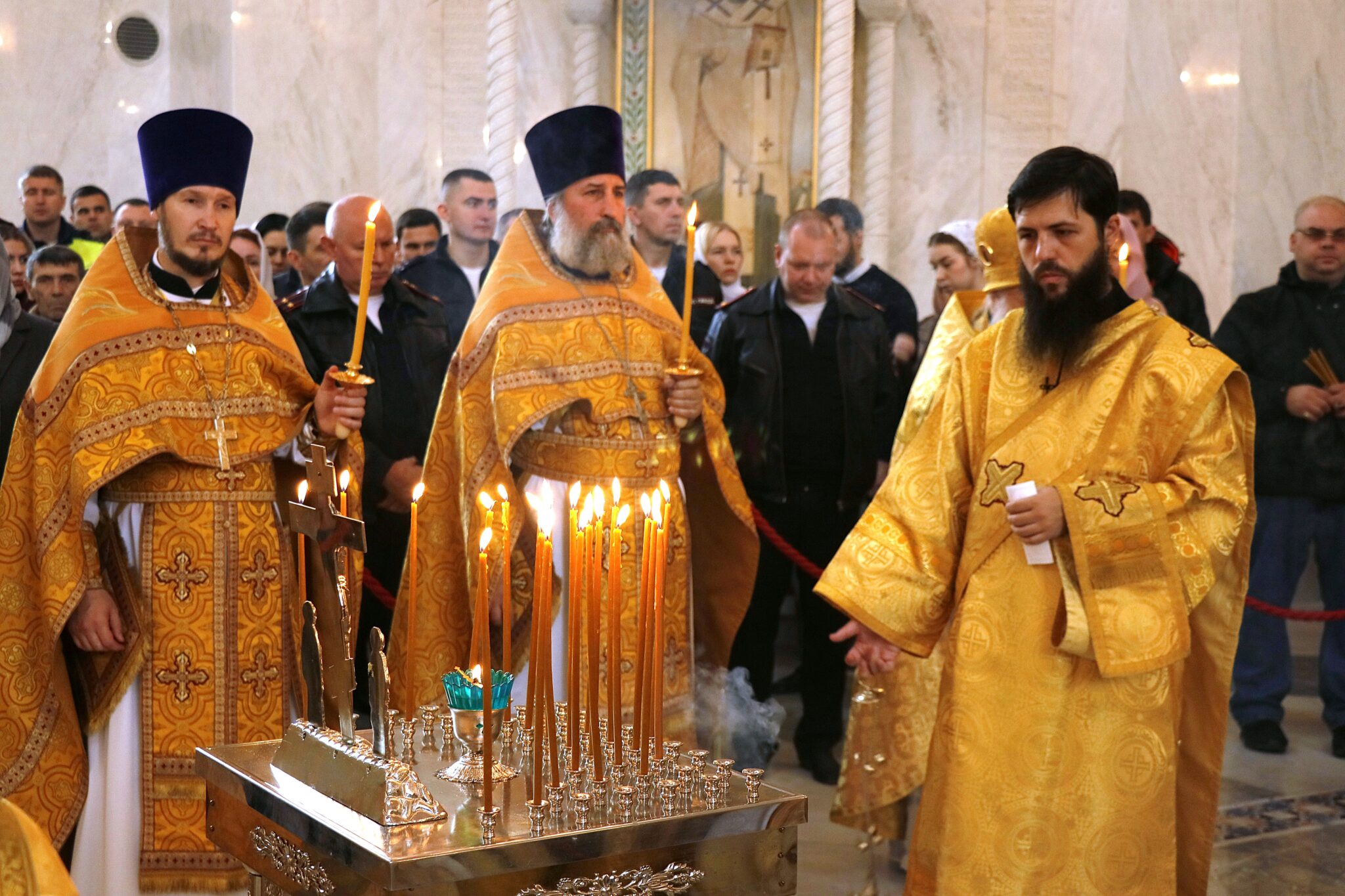 Вместе с прихожанами молились сотрудники Государственной инспекции безопасности дорожного движения.