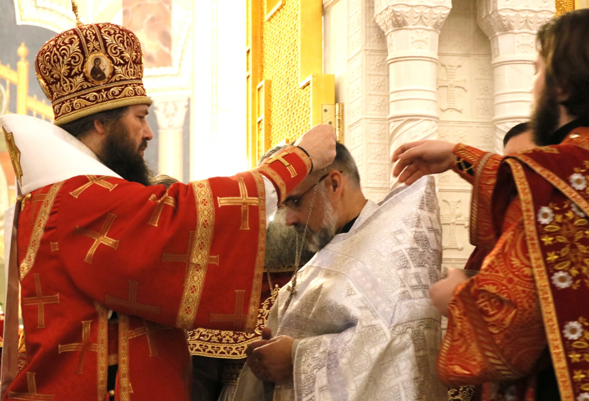 За богослужением была совершена иерейская хиротония клирика Александро-Невского собора диакона Сергия Никонова. Это еще один праздник. Как написано в Катехизисе, священство есть Таинство, в котором чрез святительское рукоположение (хиротонию) на правильно избранного нисходит Святой Дух и поставляет его совершать Таинства и пасти стадо Христово.