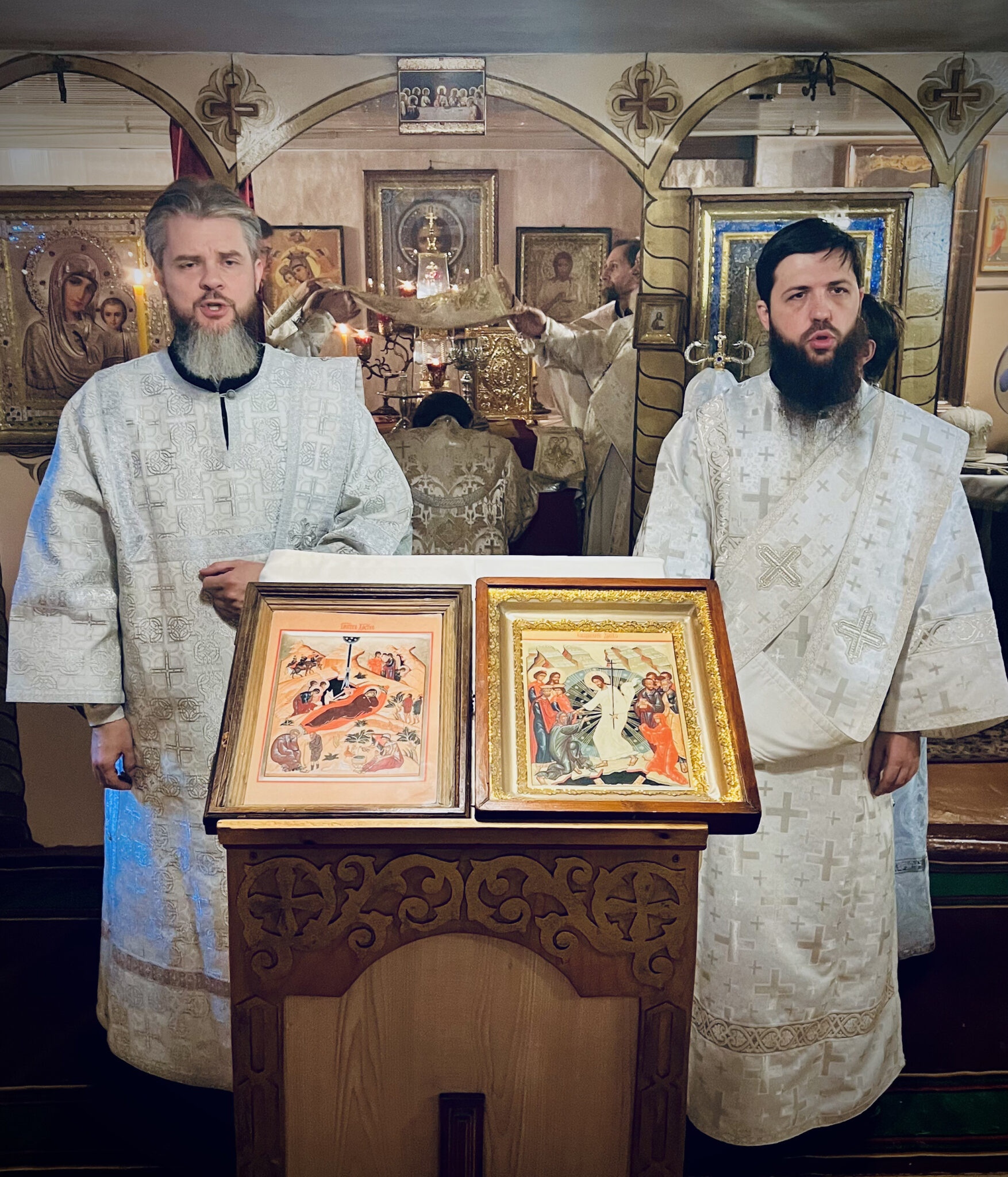 Богослужебные песнопения исполнил мужской квартет под управлением Дмитрия Ларионова.