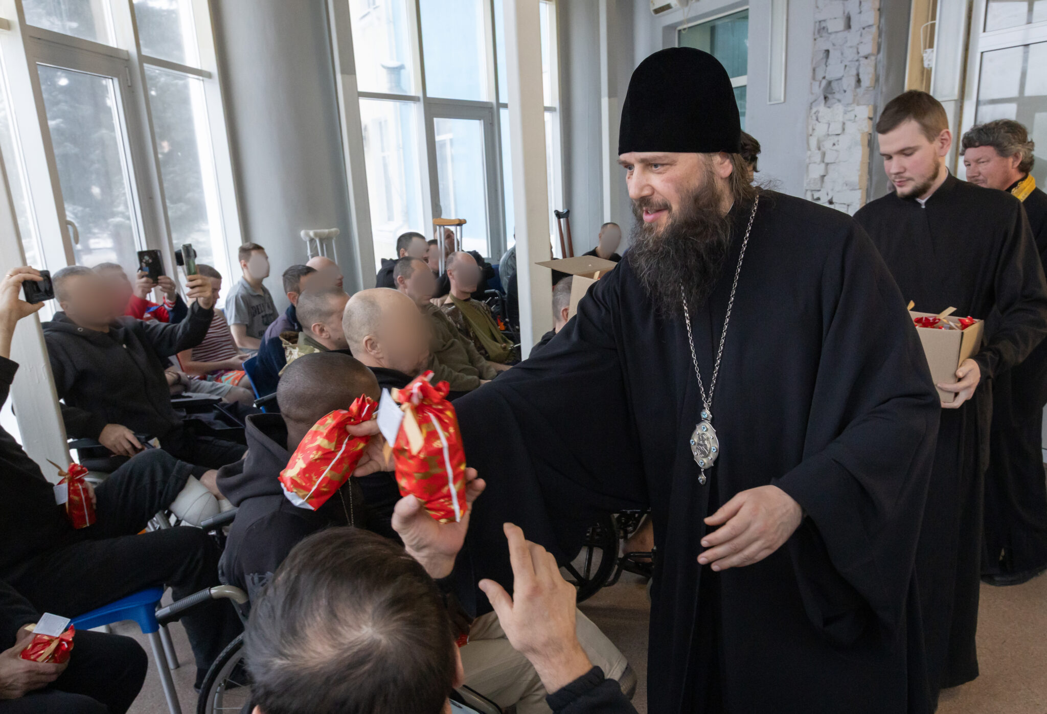 После концерта архипастырь окропил желающих святой водой, тем, кому было необходимо, раздали нательные крестики. Также раненым напомнили, что они всегда, когда нужно, могут обратиться к руководству отделения, чтобы пригласить батюшку для беседы, исповеди, Причастия.