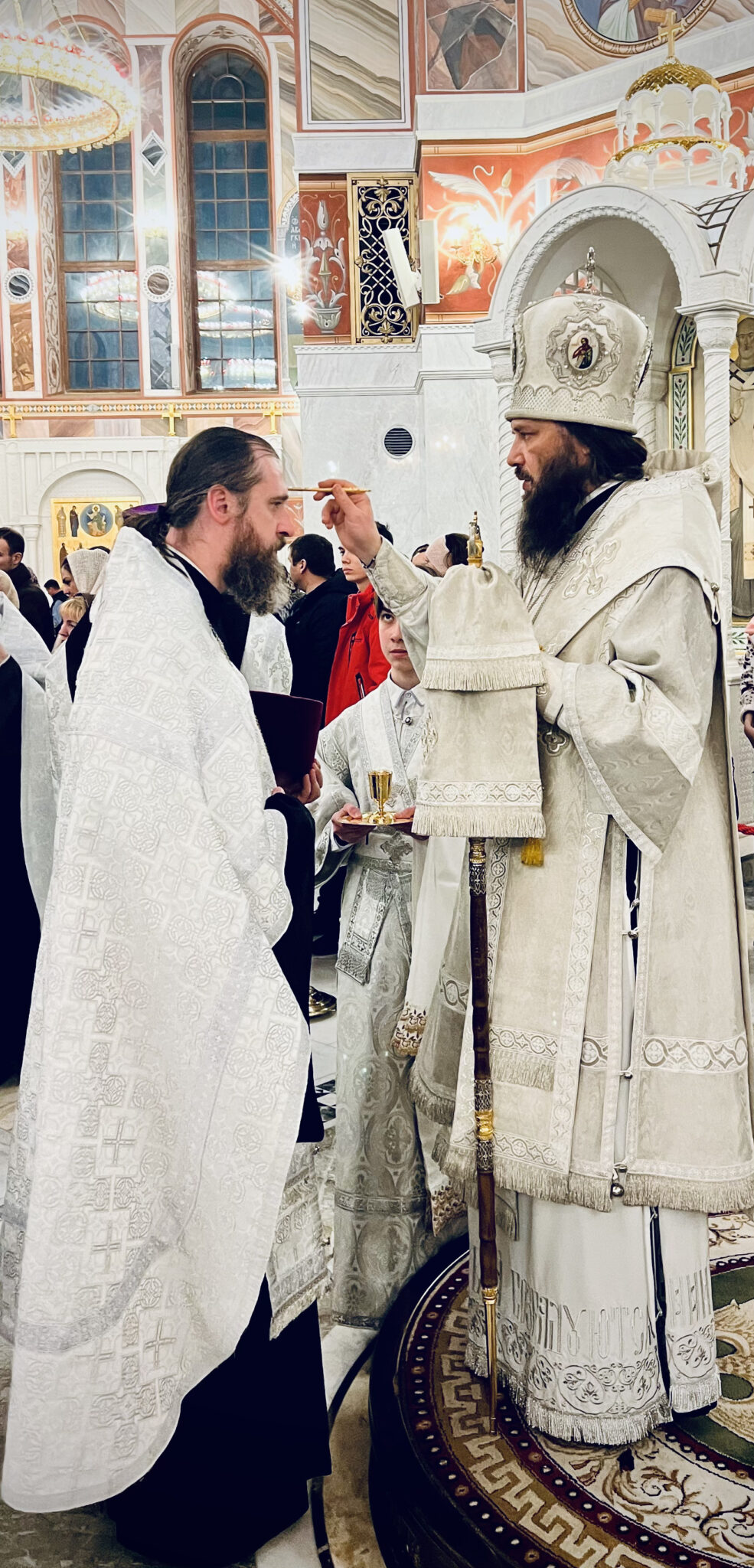 После чтения Евангелия верующим было преподано благословение в помазании освященным елеем.