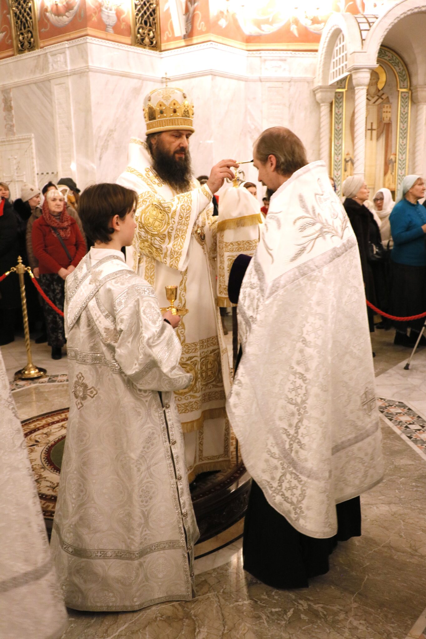 После чтения Евангелия верующим было преподано благословение в помазании освященным елеем.