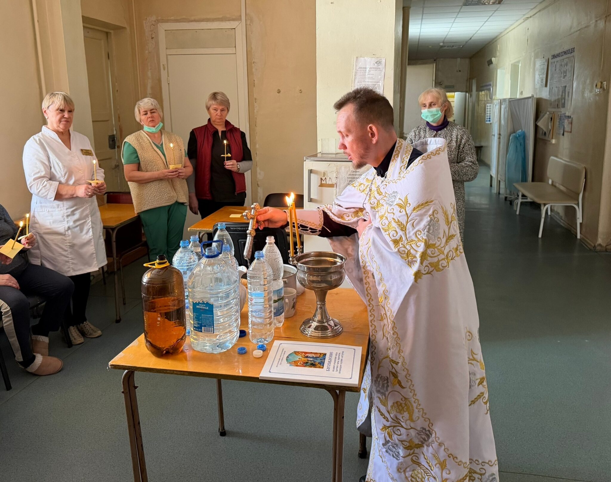 В день Святого Богоявления отец Евгений побывал в городской клинической больнице № 22. Чтобы помолиться с батюшкой в этот великий праздник в холле собрались пациенты и медицинский персонал. Священнослужитель совершил чин Великого освящения воды.