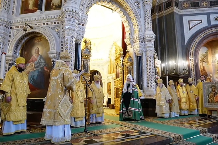 Ныне, когда Матерь-Церковь полагает начало нашему приуготовлению к душеполезному поприщу Святой Четыредесятницы, сонм архипастырей, пастырей и мирян собрался в сем величественном кафедральном Храме Христа Спасителя, дабы через принесение Бескровной Жертвы в общей молитве со страхом и трепетом возблагодарить Господа за благодеяния, которые Он изобильно излил на раба Своего Святейшего Патриарха Кирилла (последование благодарственного молебна).