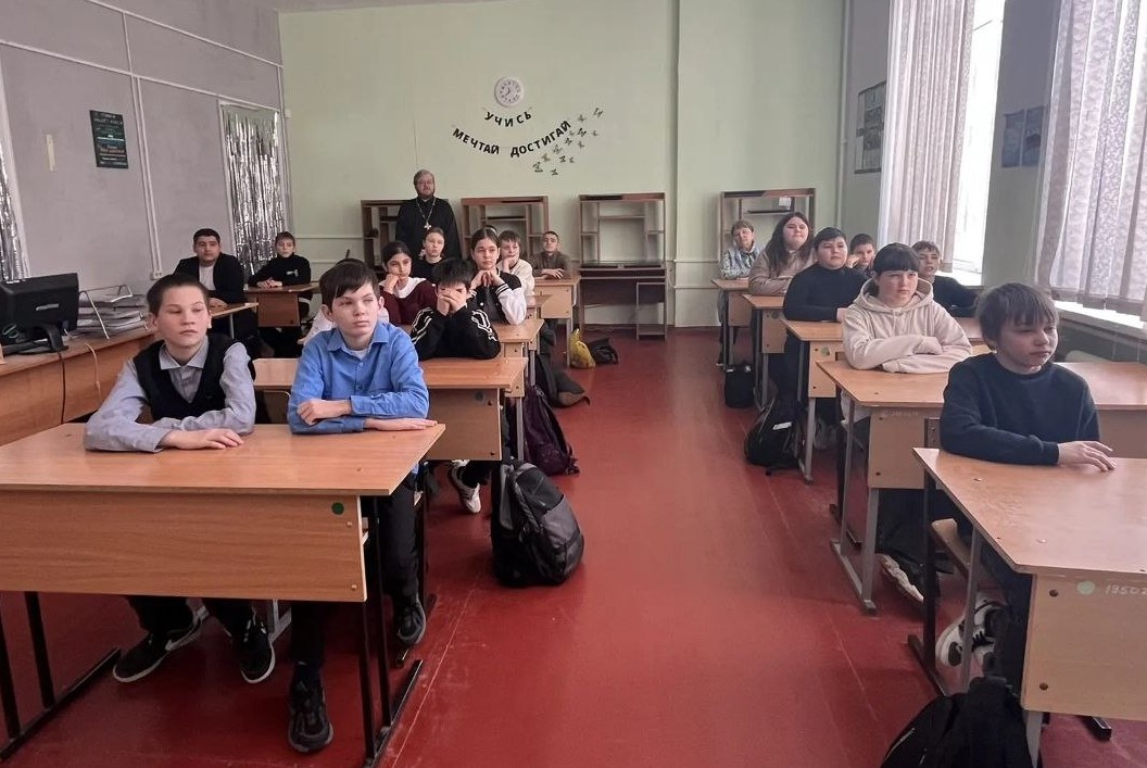 Провёл его преподаватель школы иерей Виктор Иващенко, настоятель храма Святой Троицы в поселке Горная Поляна. Священник напомнил об особо чтимых защитниках государства Российского благоверных князьях Александре Невском и Димитрии Донском.