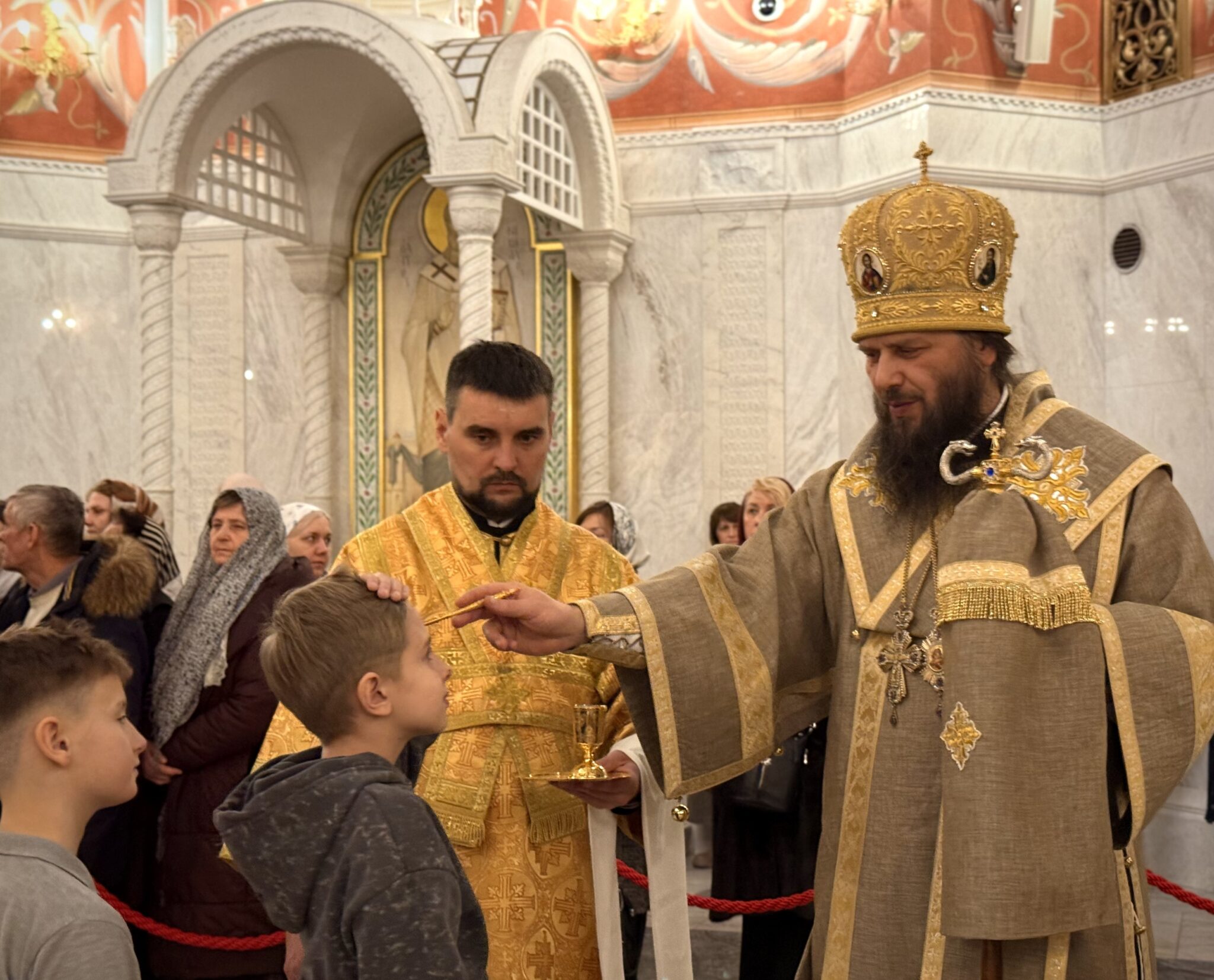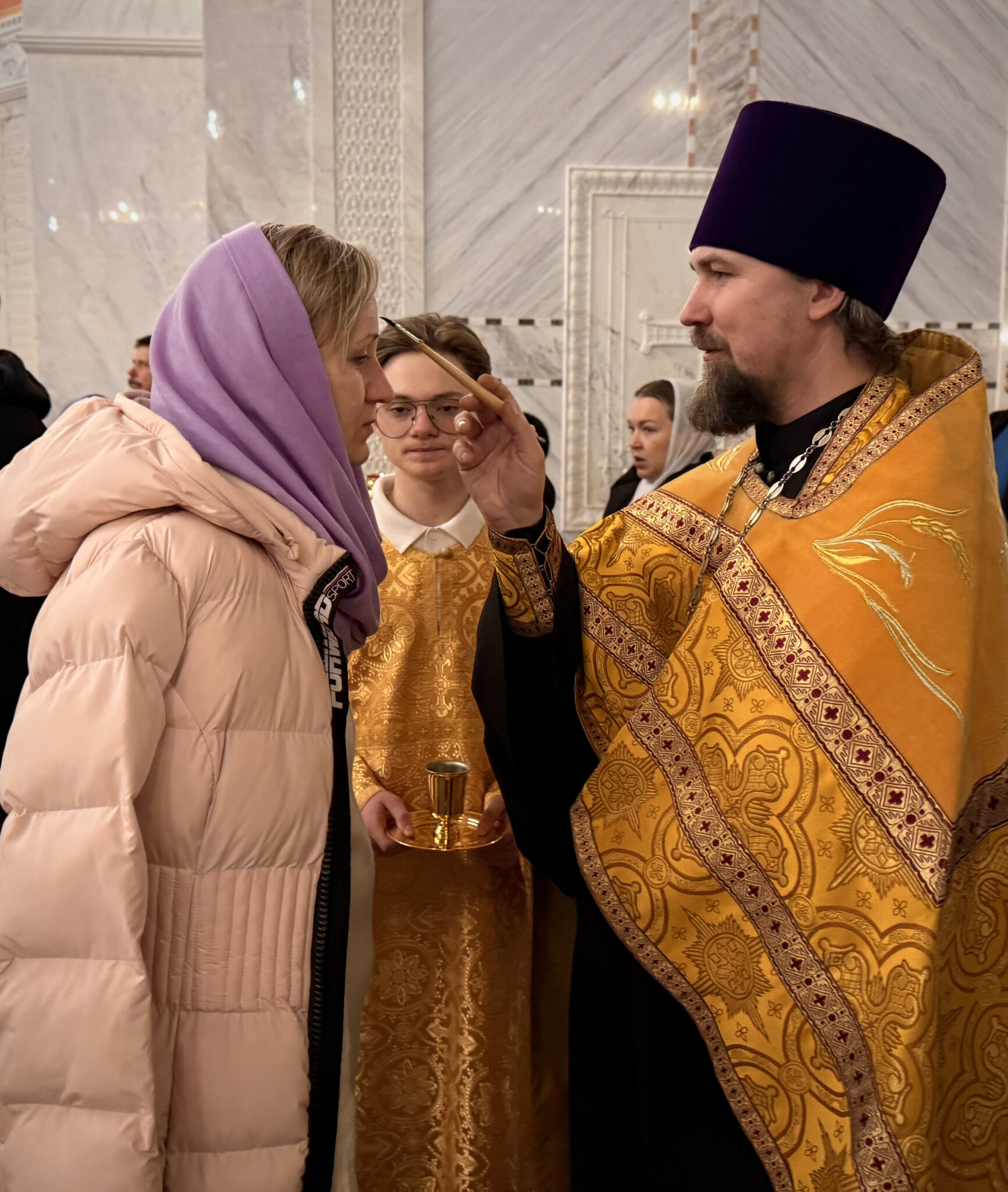 После чтения Евангелия верующим было преподано благословение в помазании елеем.