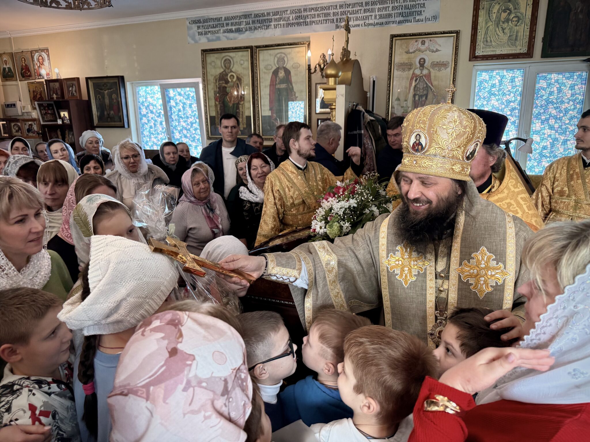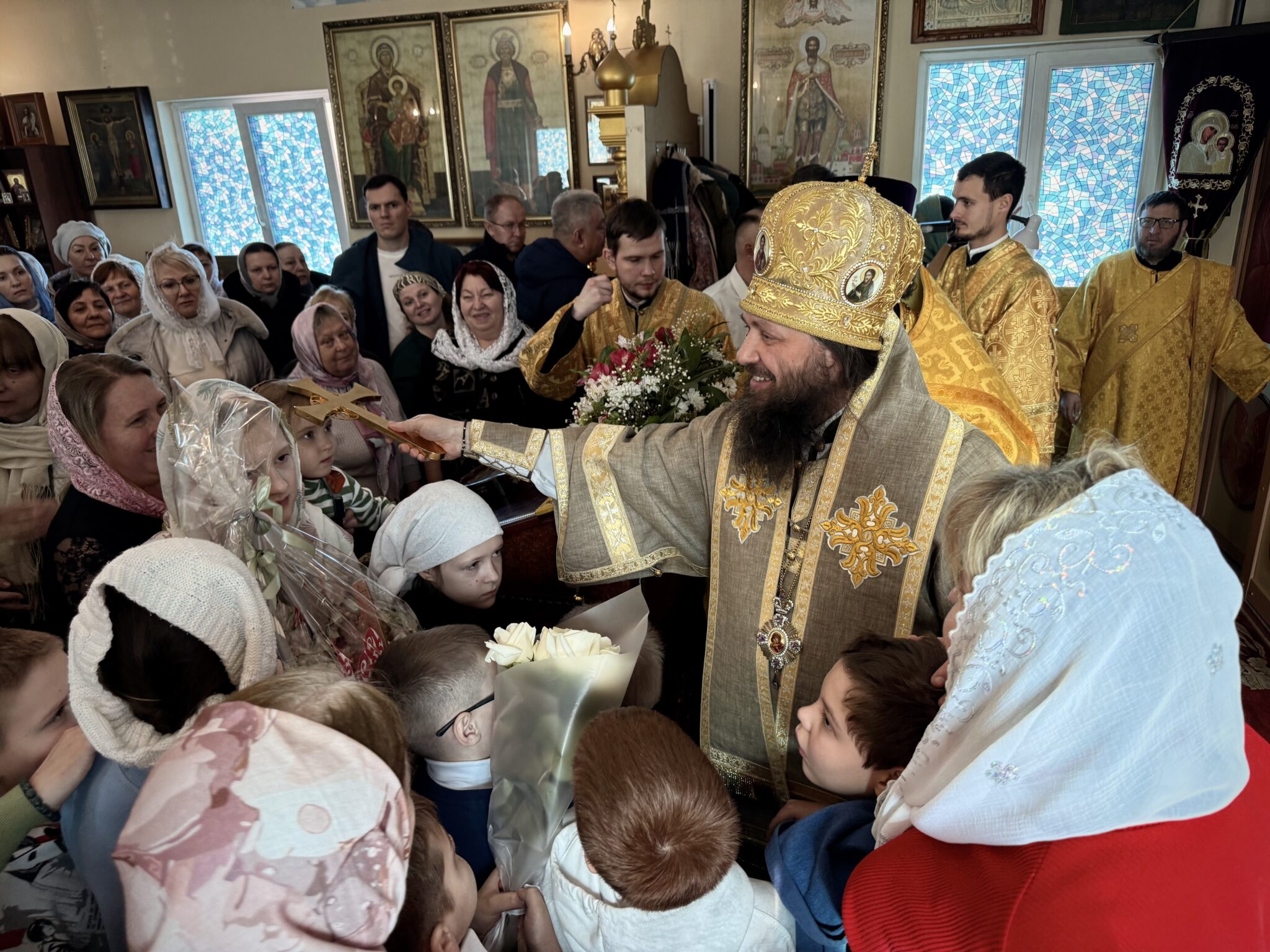 Владыку поздравили воспитанники воскресной школы «Сретение», среди которых подопечные реабилитационного центра «Теплый дом», и преподнесли архипастырю подарки, сделанные своими руками.