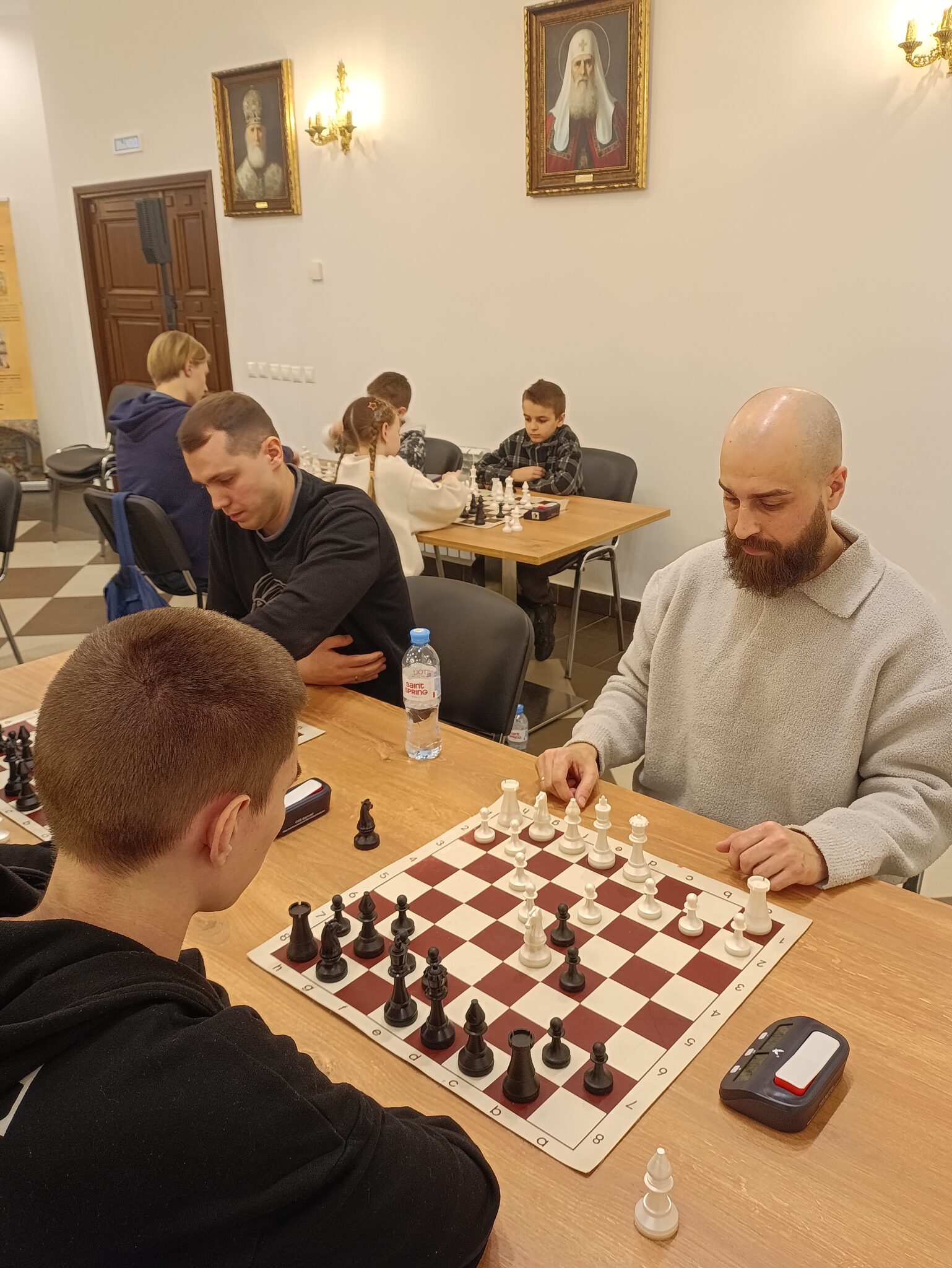 В конференц-зале кафедрального собора святого благоверного великого князя Александра Невского турнир по шахматам собрал восемьдесят человек.