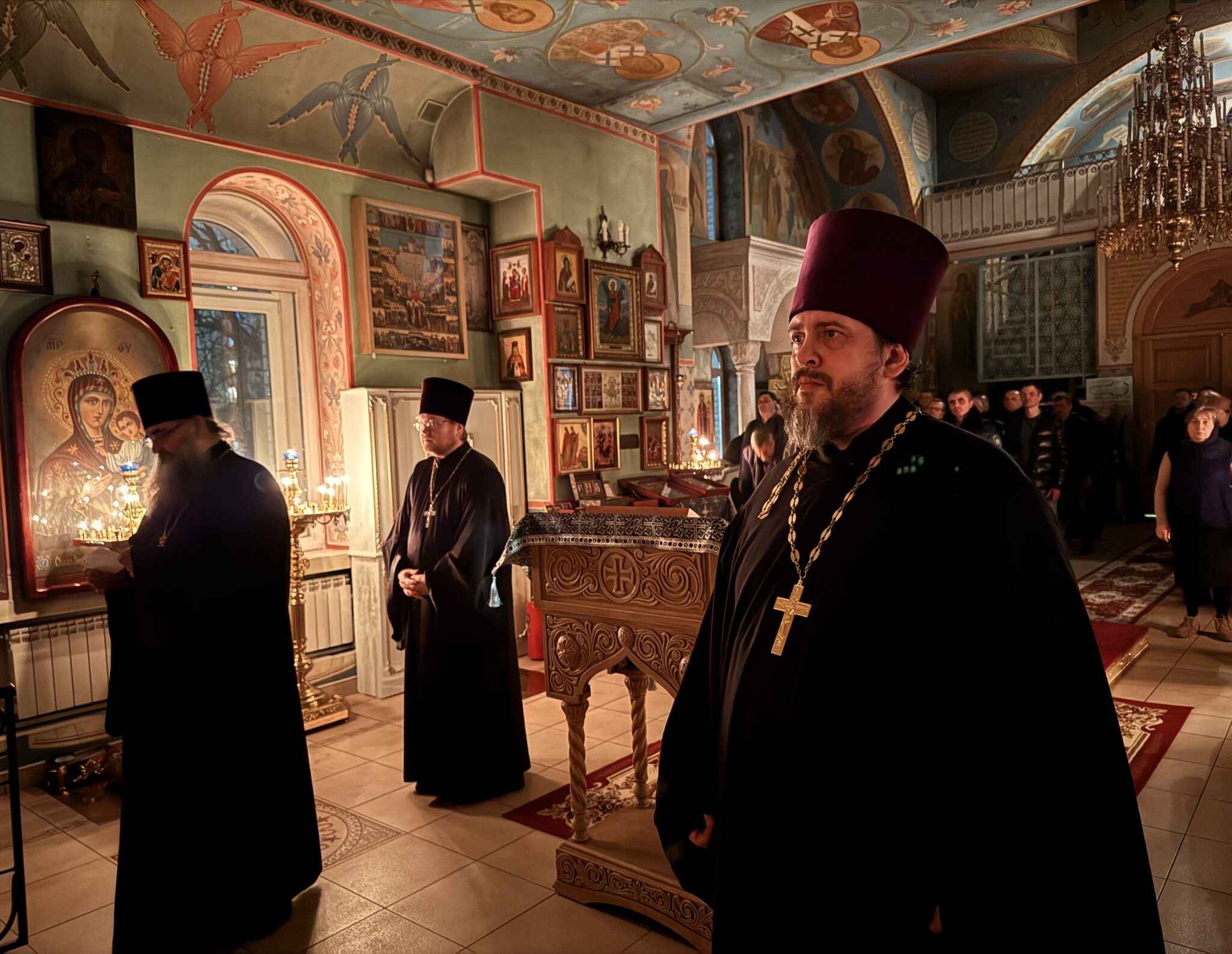 В завершение богослужения правящий архиерей приветствовал молящихся со святым вечером и с завершением чтения канона: