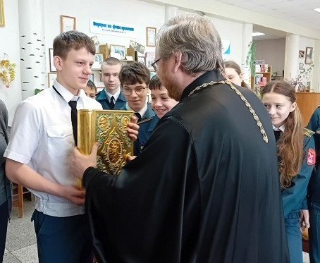 Такие же батюшка передал издания в библиотеку средней школы № 56.