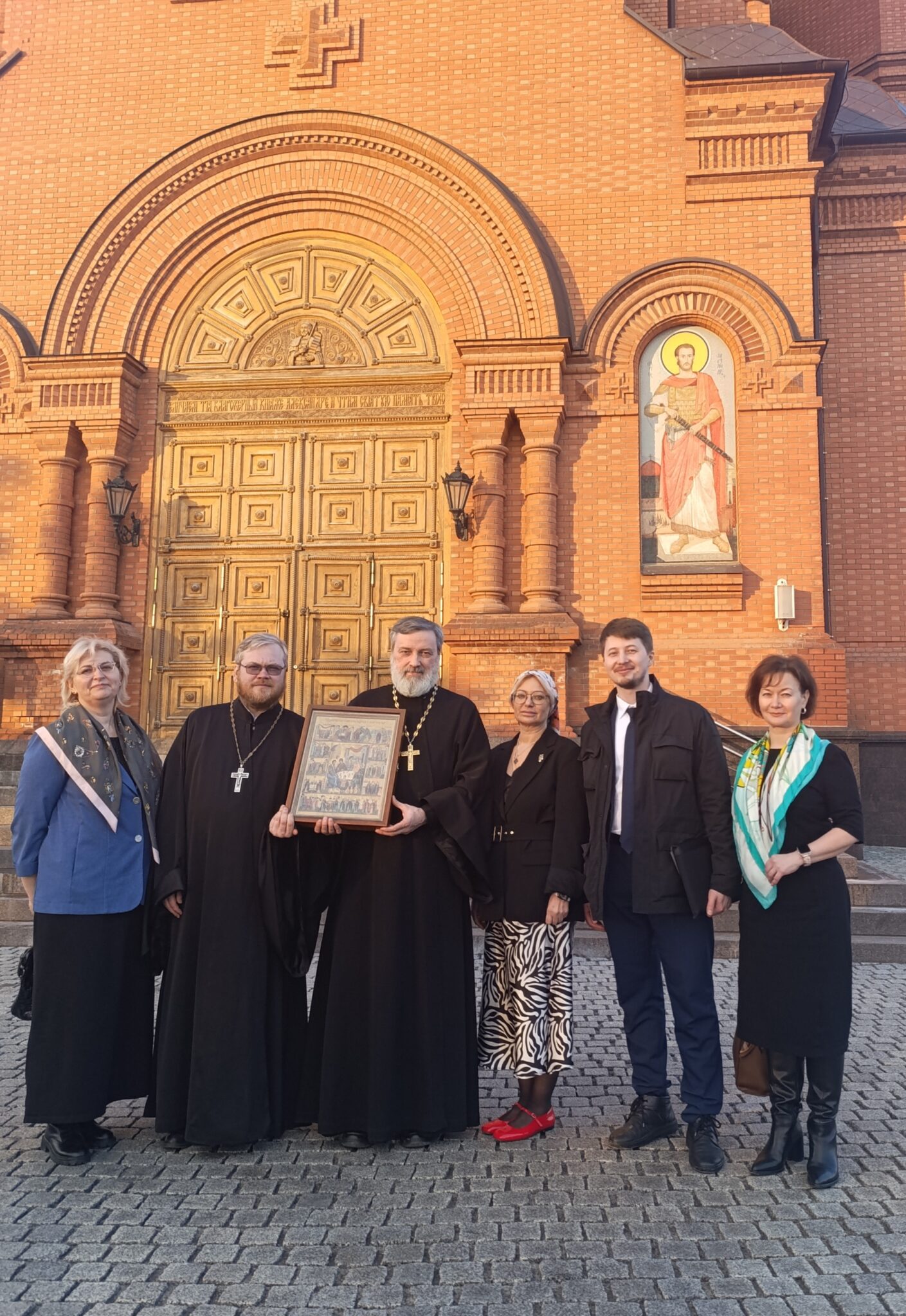 Гостей встретили иерей Алексий Суханов и иерей Виктор Иващенко. Григорий Петрович преподнес в дар собору икону Собора святых покровителей семьи и детей.
