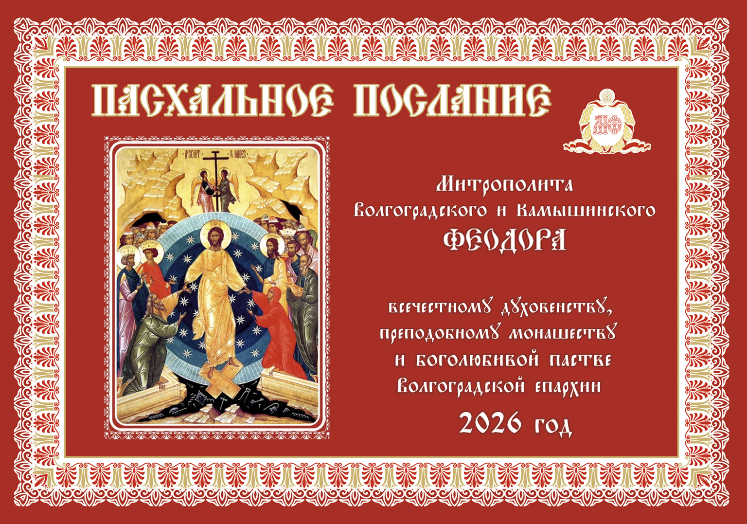 ПАСХАЛЬНОЕ ПОСЛАНИЕ митрополита Волгоградского и Камышинского ФЕОДОРА
