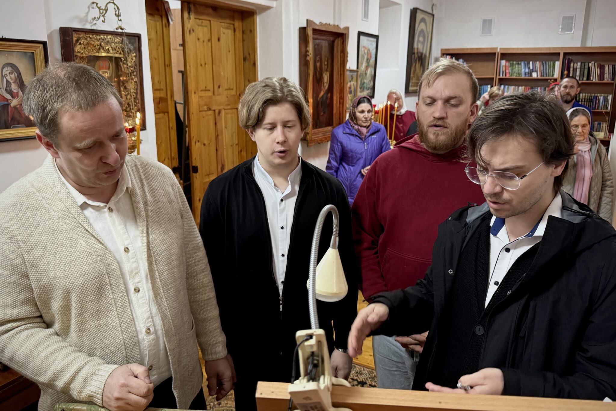 Богослужебные песнопения исполнил мужской квартет под управлением Дмитрия Ларионова.