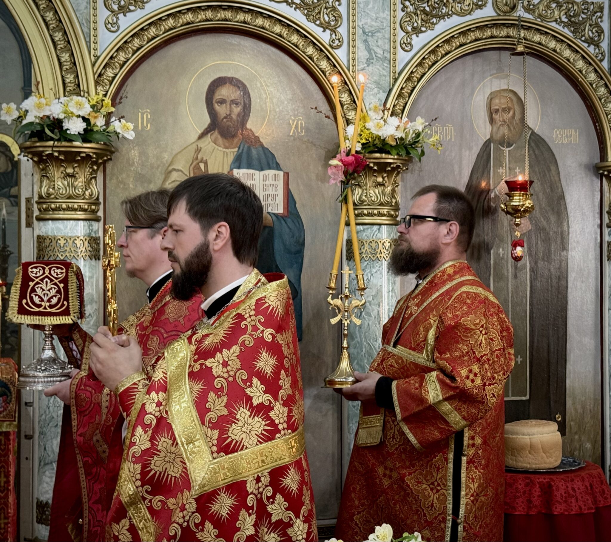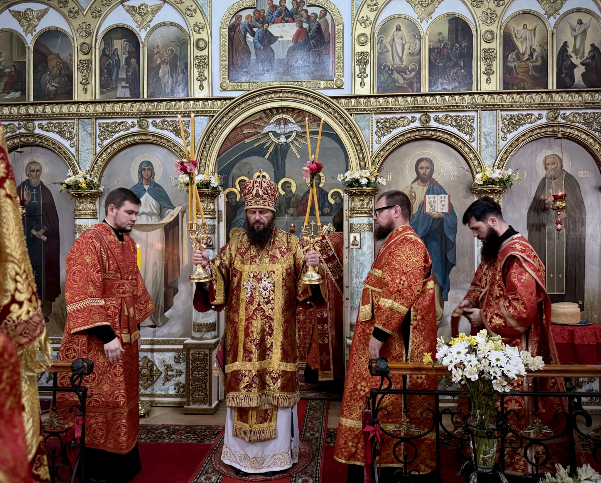 Богослужебные песнопения исполнил мужской квартет под управлением Дмитрия Ларионова.