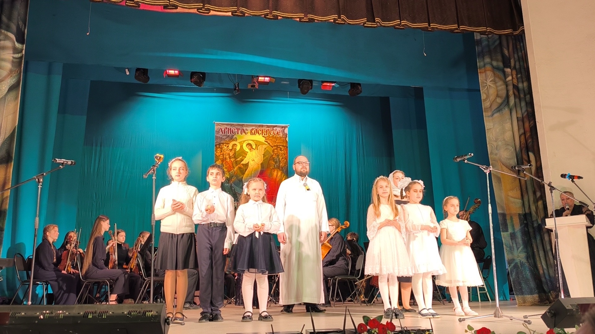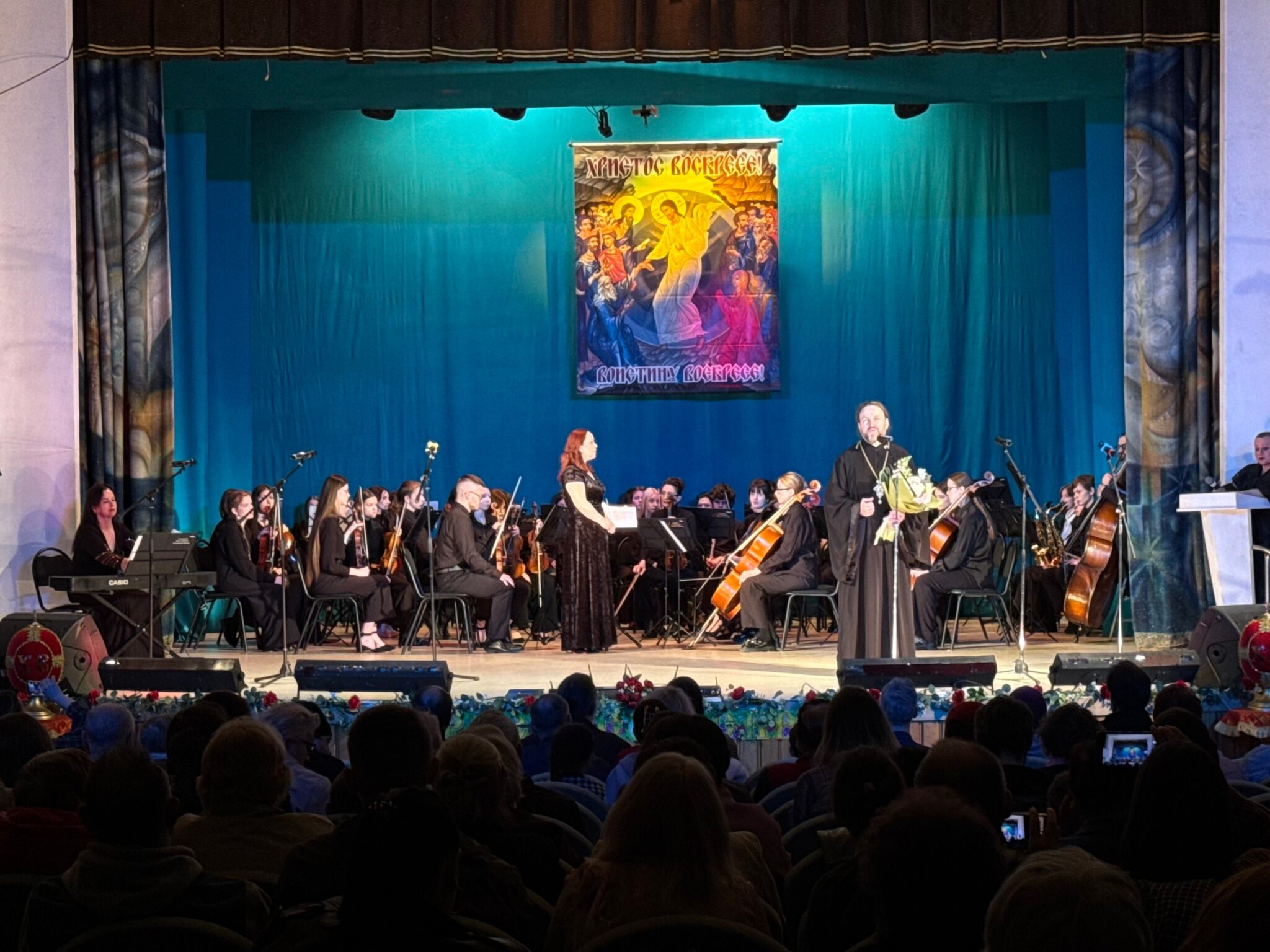 Благочинный Сталинградского округа, настоятель храма святого праведного Иоанна Кронштадтского иерей Олег Иващенко поздравил зрителей и участников концерта со Светлым Христовым Воскресением, поблагодарил за удивительный праздник всех, кто потрудился ради Господа.