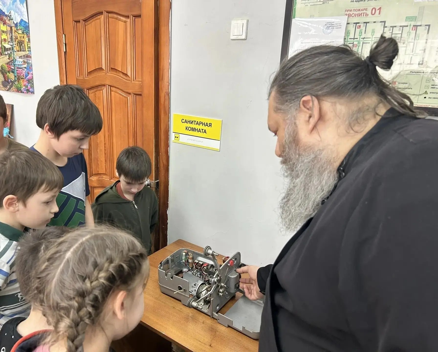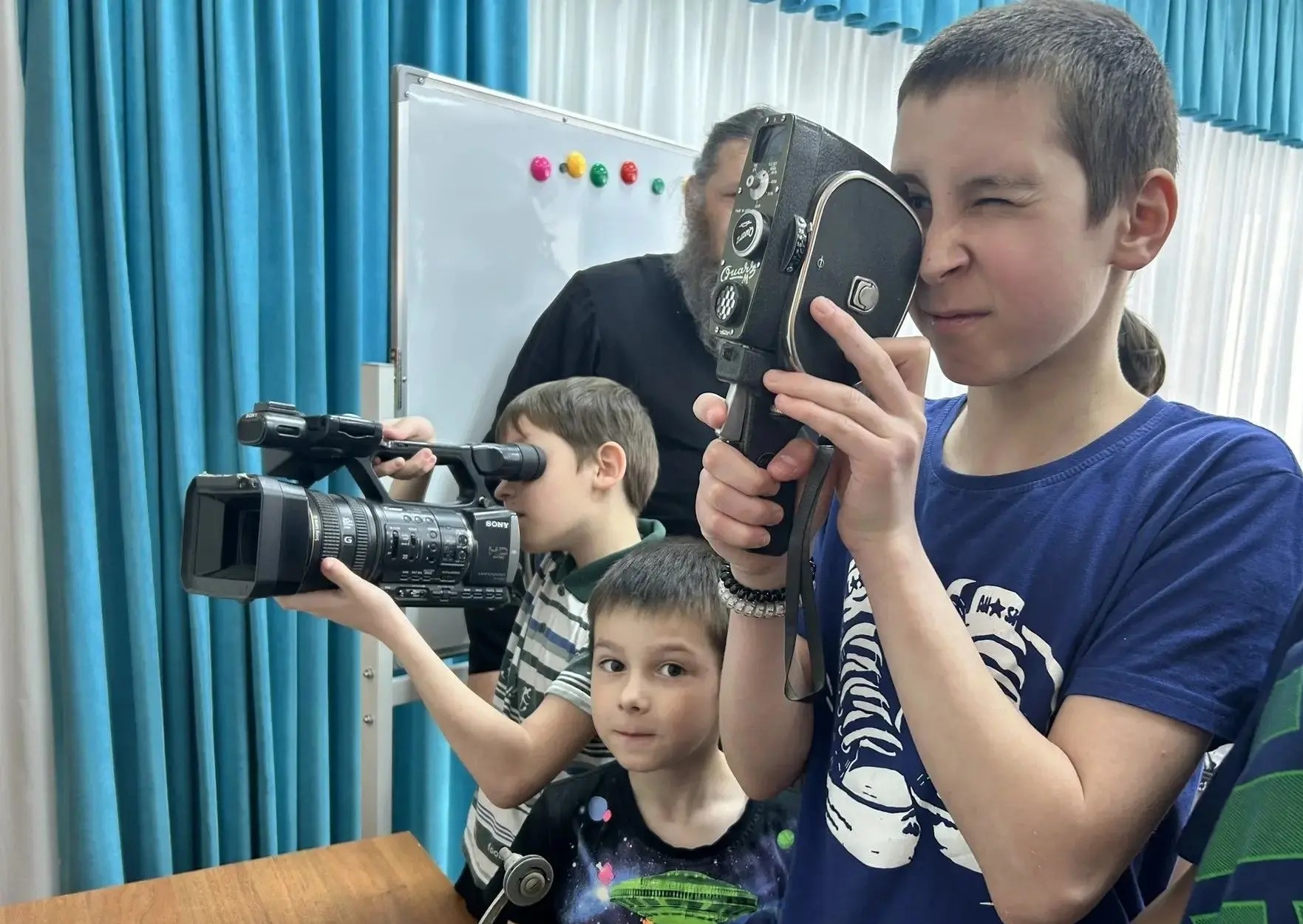 Константин кратко изложил историю кинематографа, рассказал детям об основах формирования кадра, показал на практике, что такое кинопроектор и кинокамера, а также объяснил, чем отличается современная видеокамера от кинокамеры.